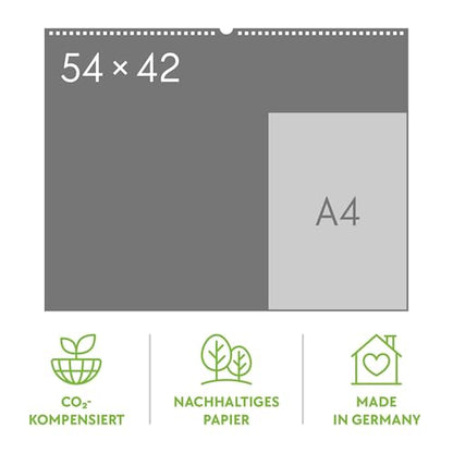 - Großformatiger Wandkalender im Querformat 54 × 42 cm