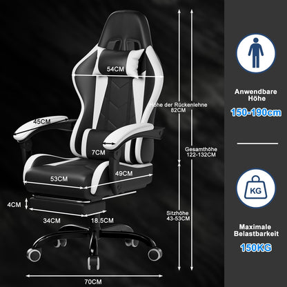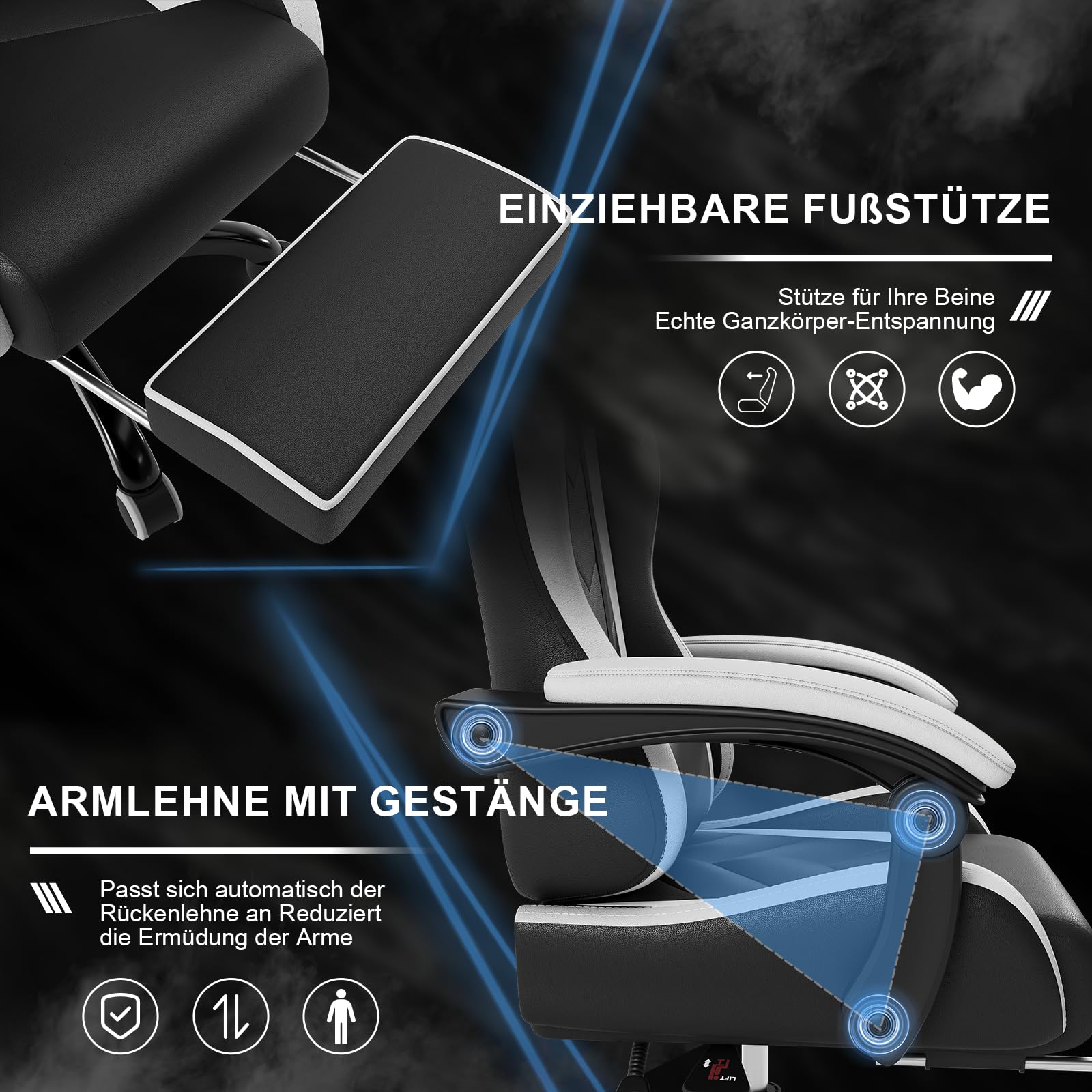 DEVOKO Ergonomischer Massage Gaming Stuhl mit Fußstütze (150kg Belastbarkeit, 360° drehbar)