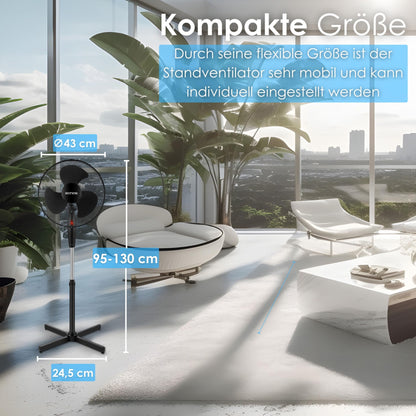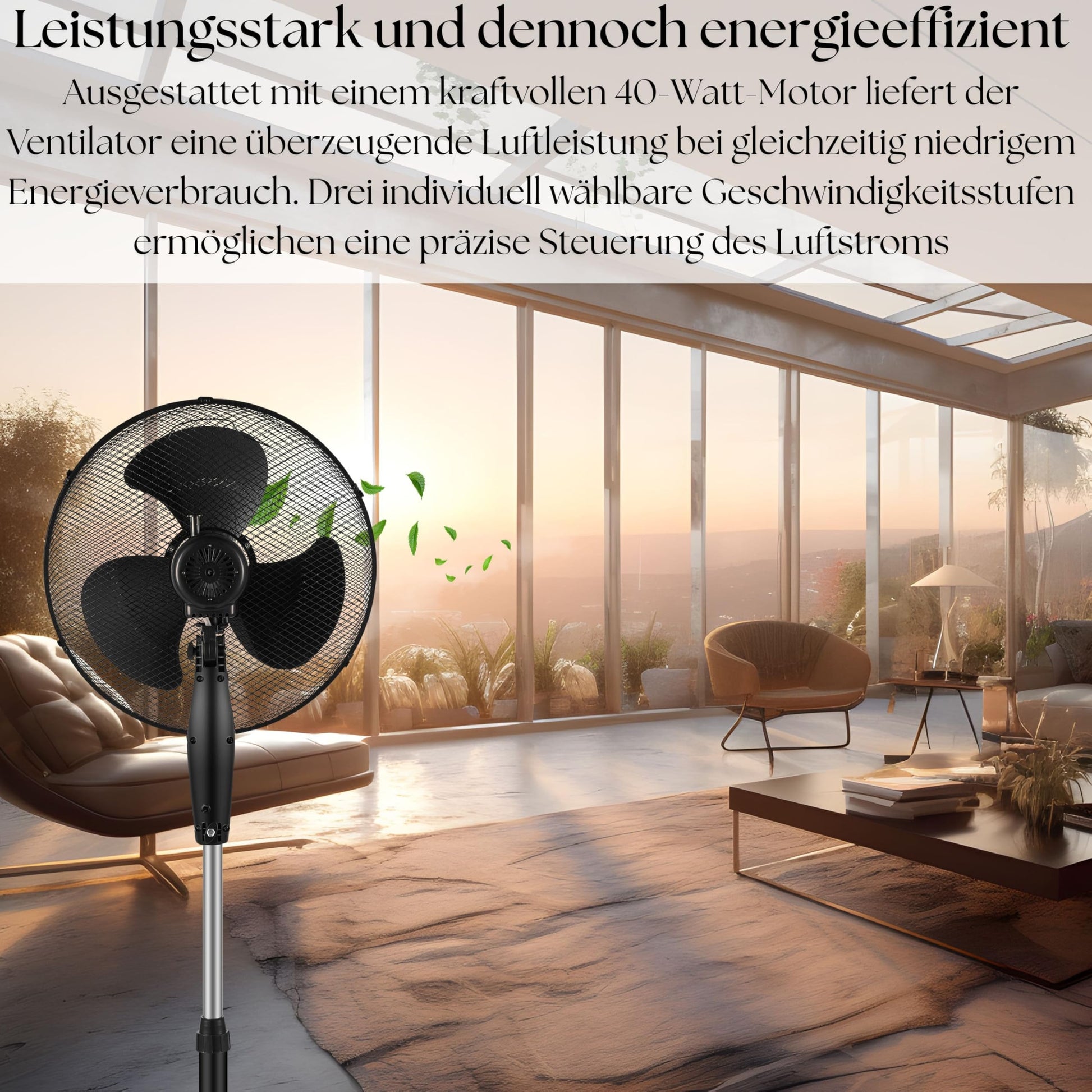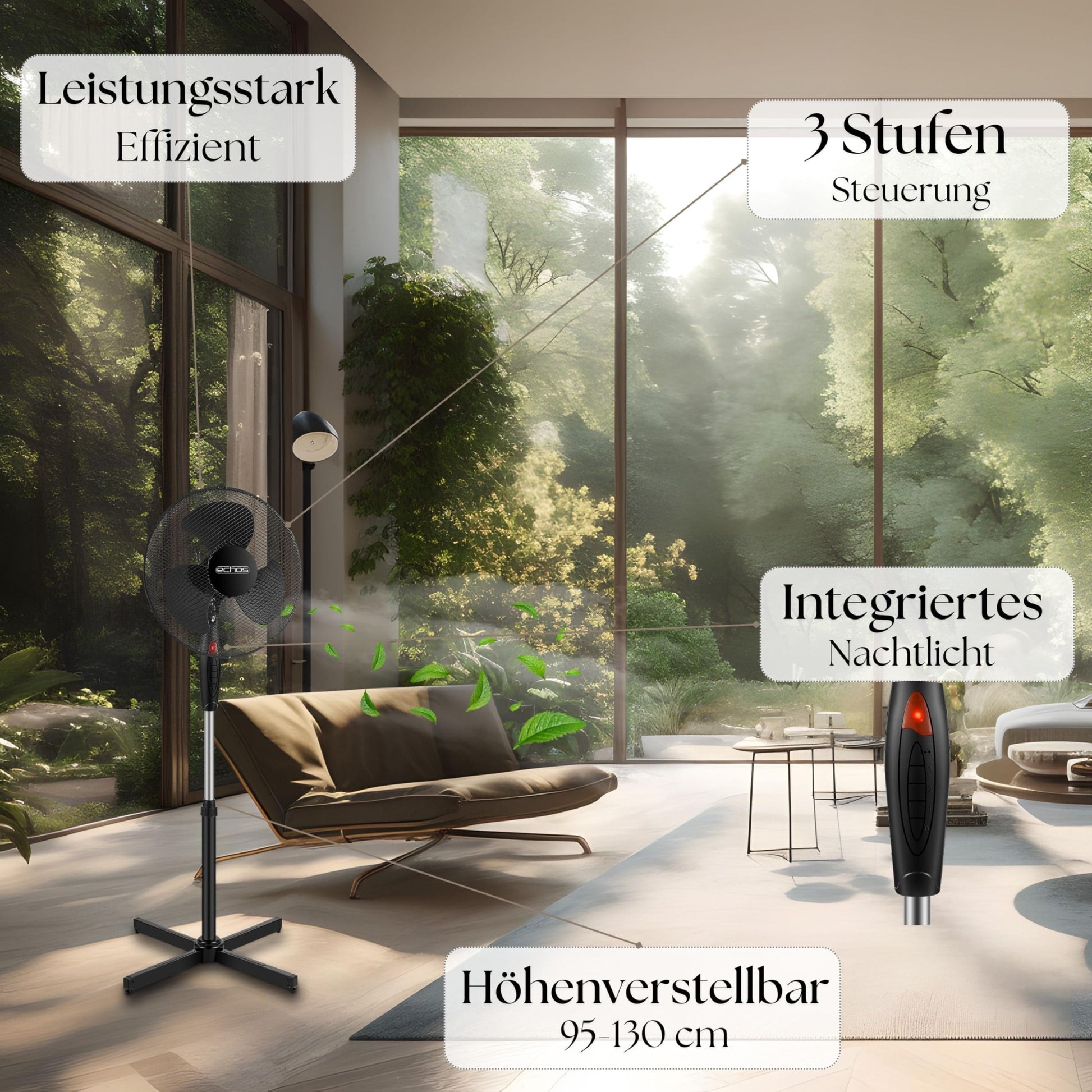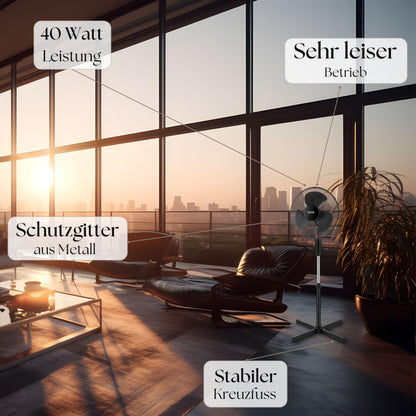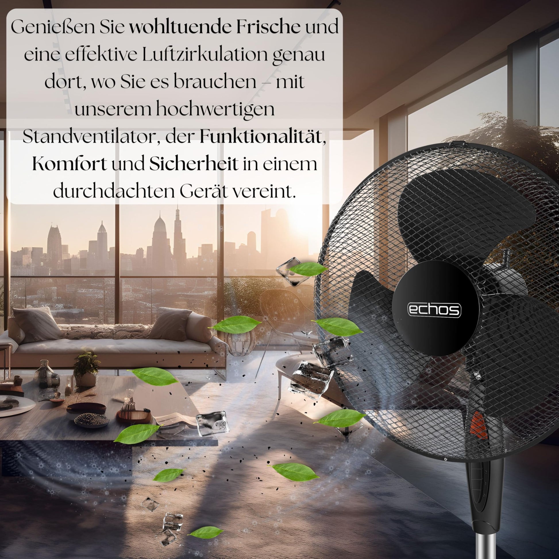 Echos® Standventilator (Ø 43cm): Sehr leise, Energiesparend, 3 Stufen, Oszillation
