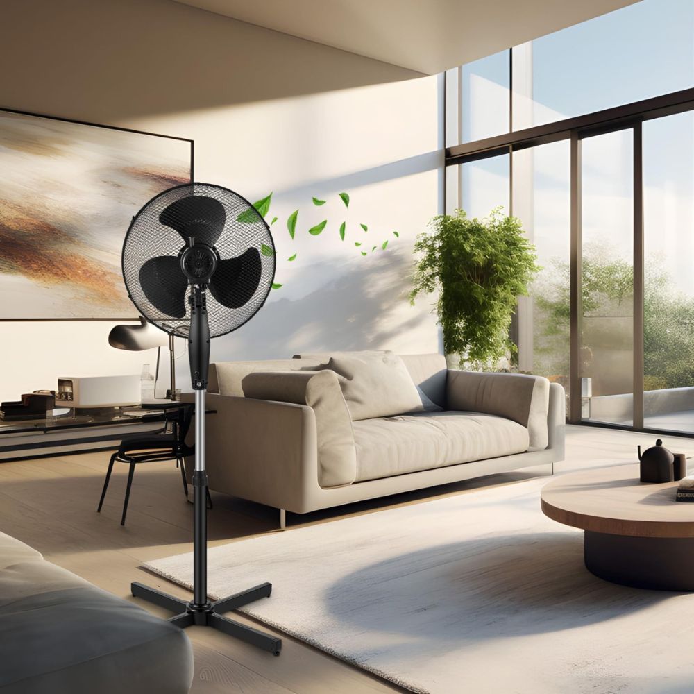 Der EO102 bietet zuverlässige Kühlung mit leisem Betrieb und flexibler Einstellung. Mit 40 Watt Leistung sorgt er für angenehme Luftzirkulation - ideal für Wohn-, Schlaf- und Arbeitsräume. Drei Geschwindigkeitsstufen, verstellbare Höhe (95-130cm), neigbarer Kopf und zuschaltbare Oszillation ermöglichen individuellen Komfort. Das integrierte Nachtlicht sorgt für dezente Beleuchtung bei Bedarf. Ein stabiler Kreuzfuß und das geschützte Metallgitter garantieren sicheren Betrieb.