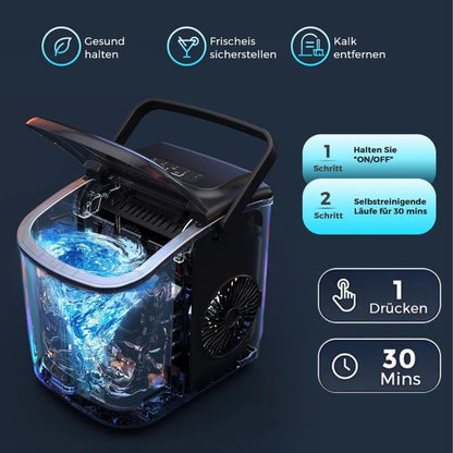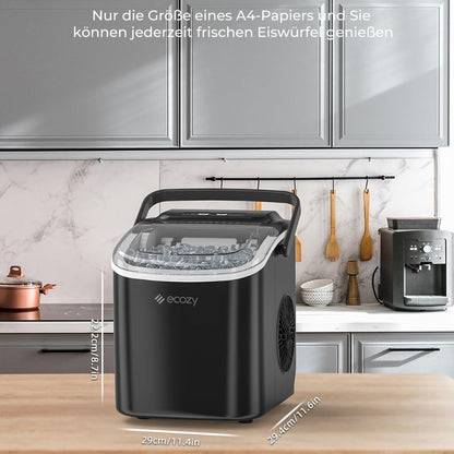 Eisgenuss in nur 6 Minuten: Die kompakte ecozy Eiswürfelmaschine liefert bis zu 12kg Eis pro Tag - hygienisch, leise (<35dB) und effizient.