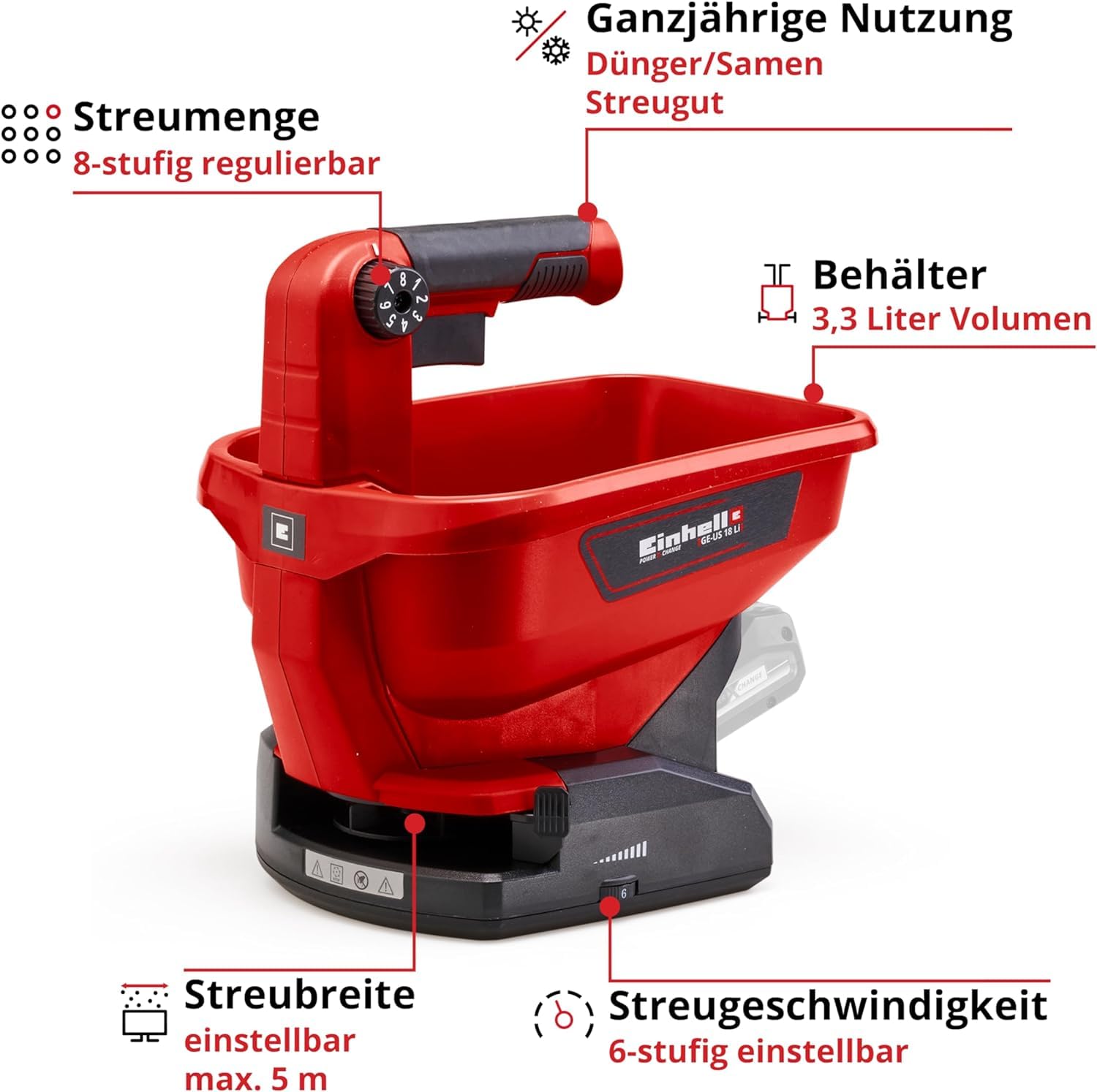 Einhell Universal Streuer (GE-US 18) Li-Solo Power X-Change ohne Akku und Ladegerät