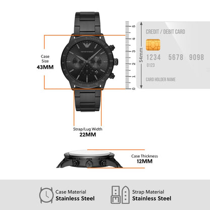 Emporio Armani 'AR11242' Chronograph-Herrenuhr (43mm): Schwarzes Edelstahlgehäuse