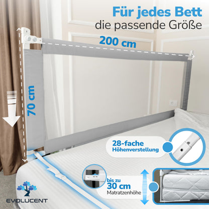 EVOLUCENT Bettgitter (200cm) ohne Verschrauben mit Rausfallschutz für Elternbett: Waschbar