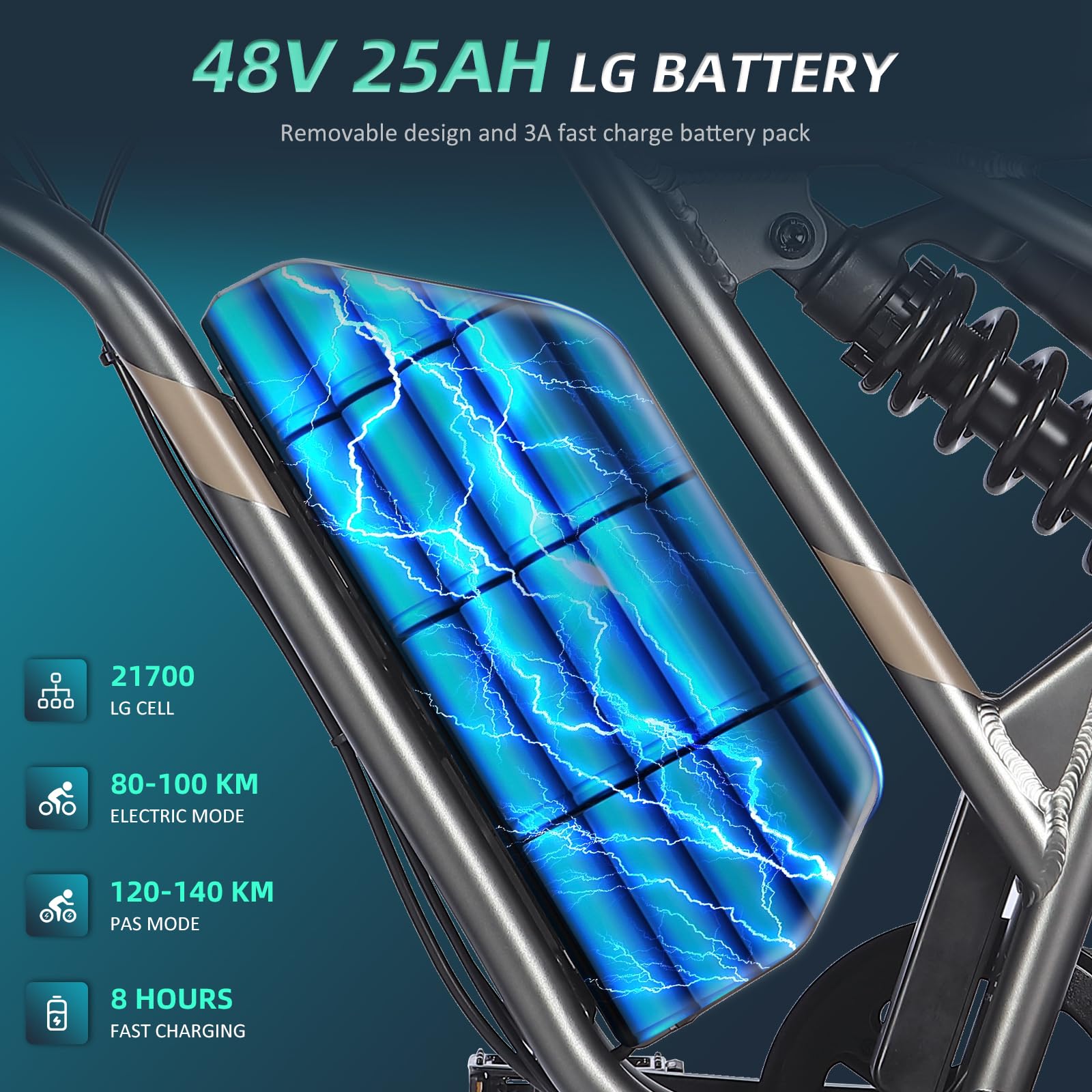 Akku: 48V 25Ah LG-Zellen, Reichweite bis 140km, fortschrittliche 21700-Technologie