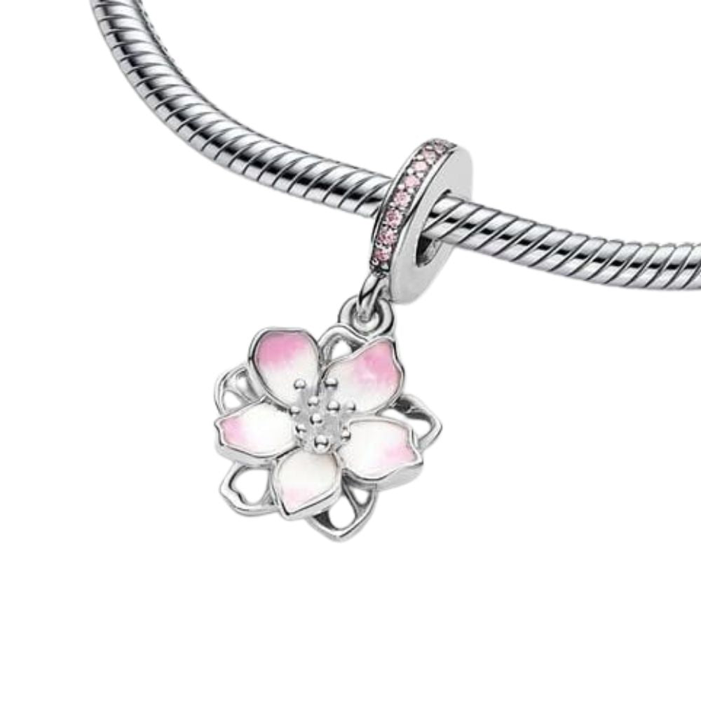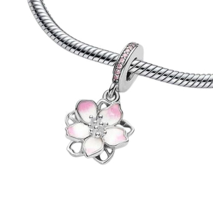 Feitery Cherry Blossom Dangle Charm Herz-Anhänger Armband zum Muttertag