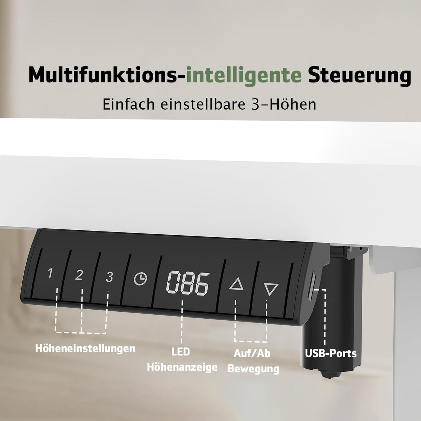 4 Speicherplätze + LED-Display: Favorisierte Arbeitshöhen auf Knopfdruck abrufbar