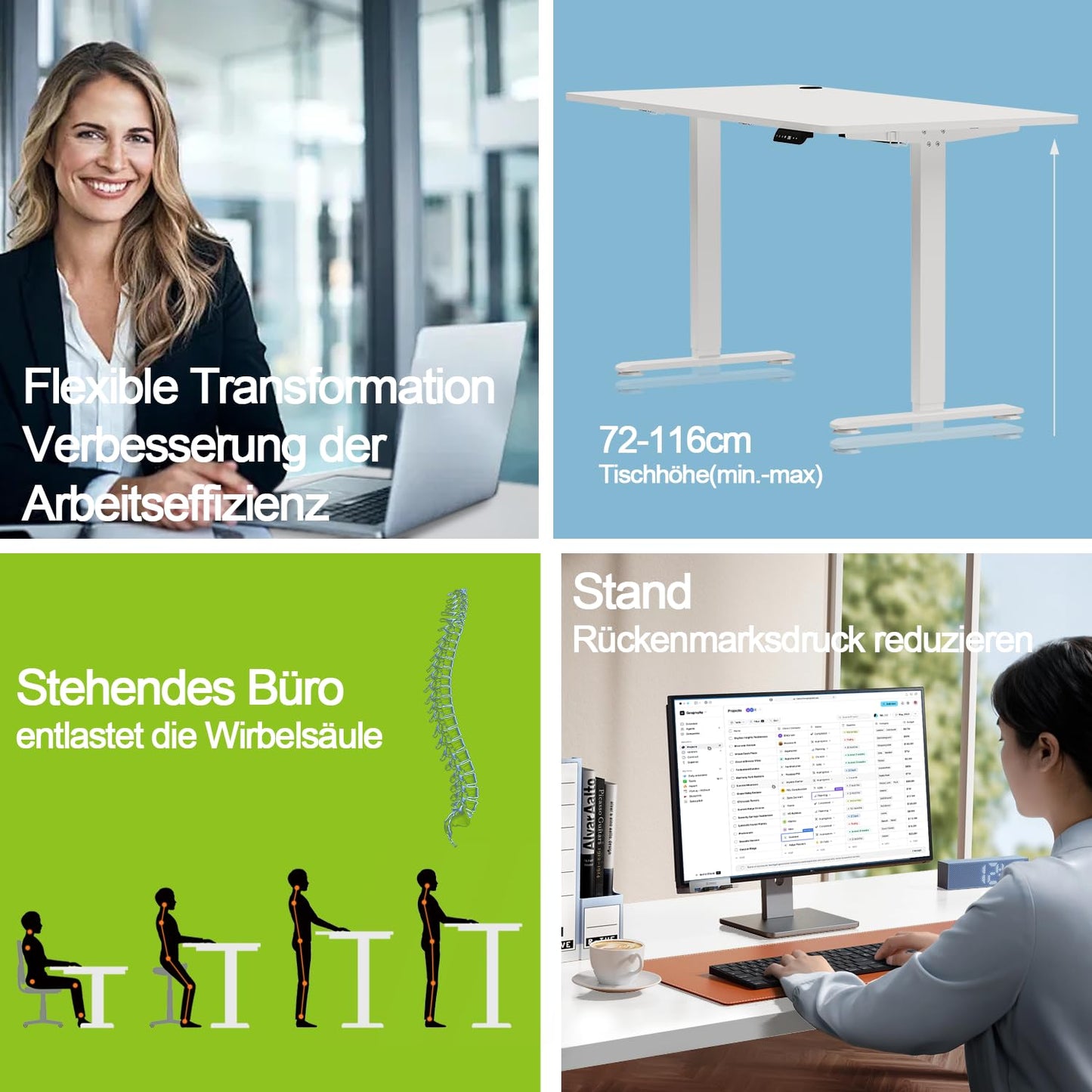 Höhenverstellbar (72-116cm): Sanft & leise per Motor verstellbar
