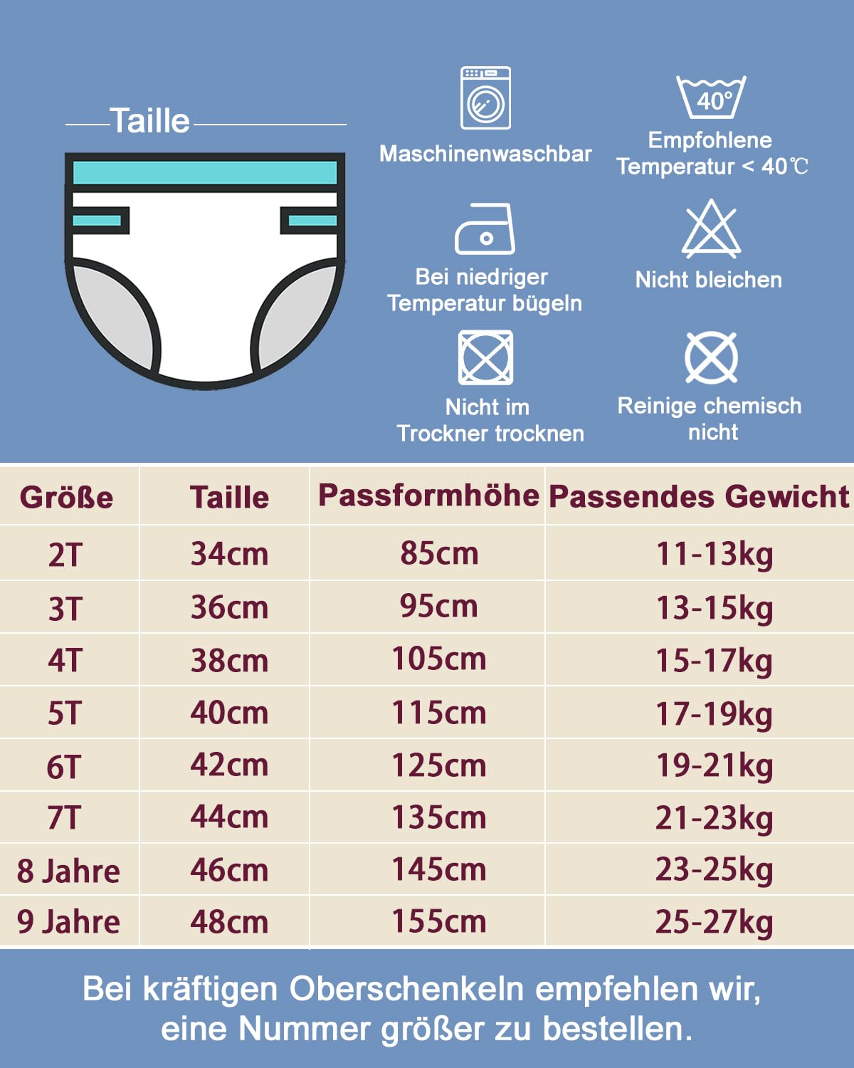 Hinweis: Diese Trainingshosen sind kein Ersatz für Windeln bei größeren Mengen Urin.