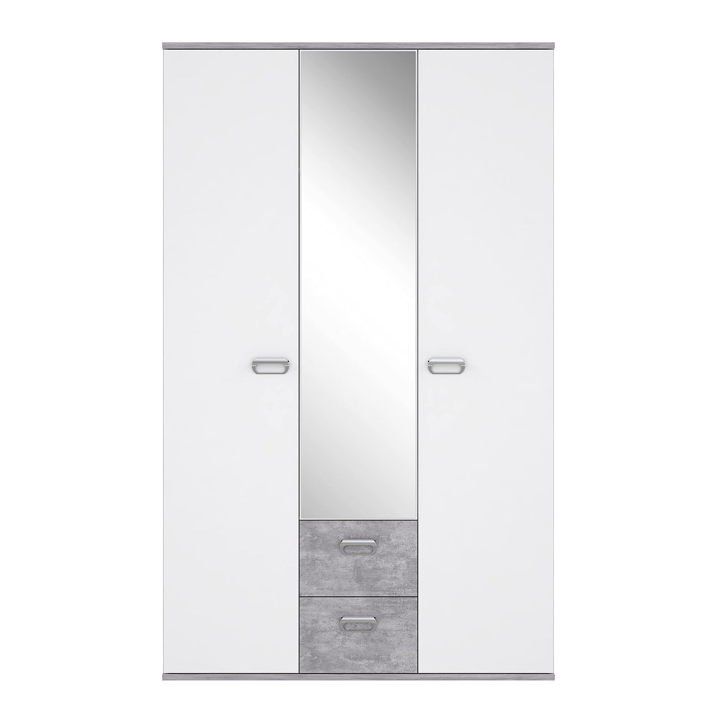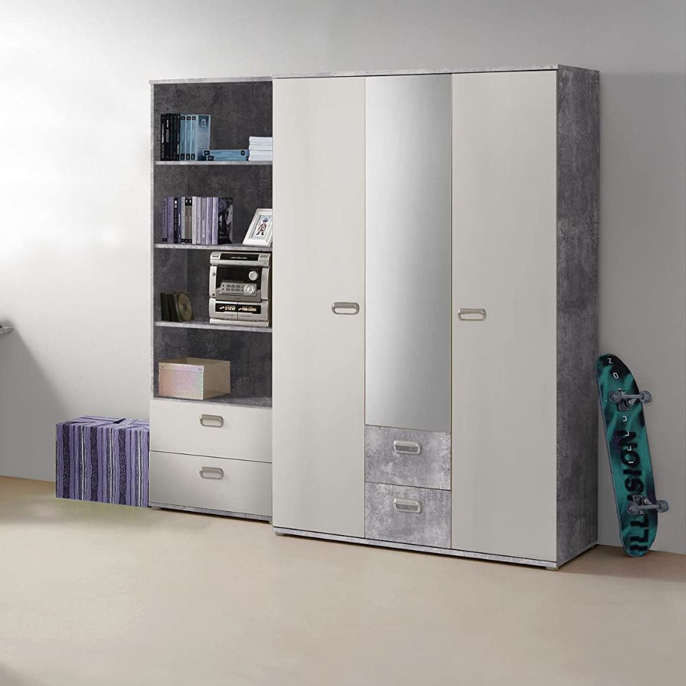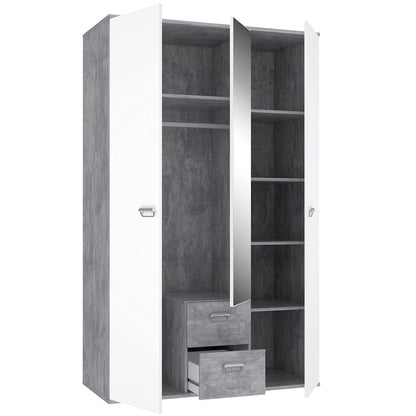 Kleiderschrank 'EMILY' mit Betonoptik und Spiegel: Lichtgrau mit Weiß (Modell: EMLS95-C251)