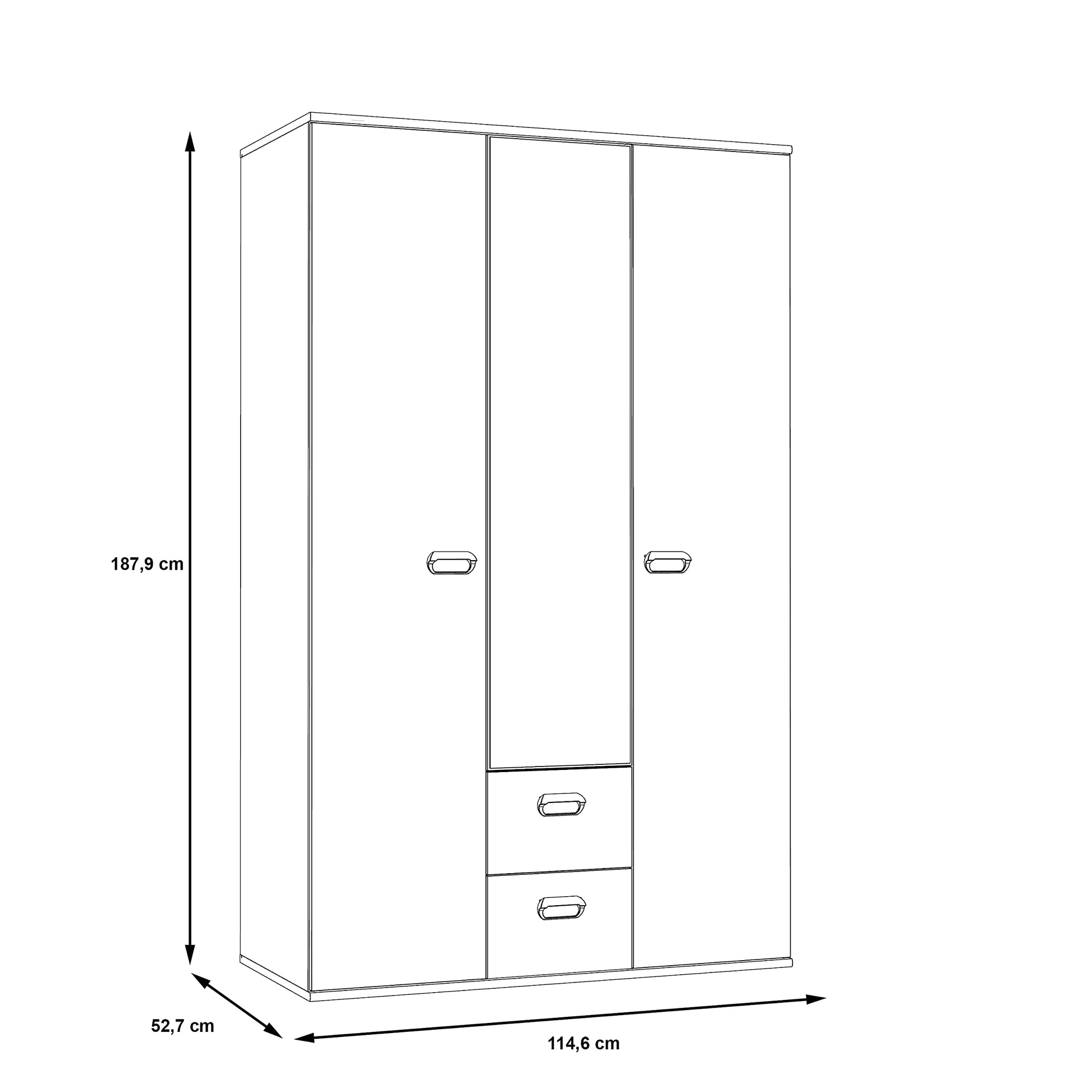 Der Kleiderschrank 'EMILY' in Betonoptik/Lichtgrau kombiniert mit Weiß bietet viel Stauraum bei moderner Optik. Ideal für Schlafzimmer, Gästezimmer oder Flur.