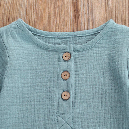 Dieses atmungsaktive Outfit aus Bio-Baumwolle & Leinen bietet angenehmen Tragekomfort für Babys und Kleinkinder - ideal für Frühjahr, Sommer und Herbst.