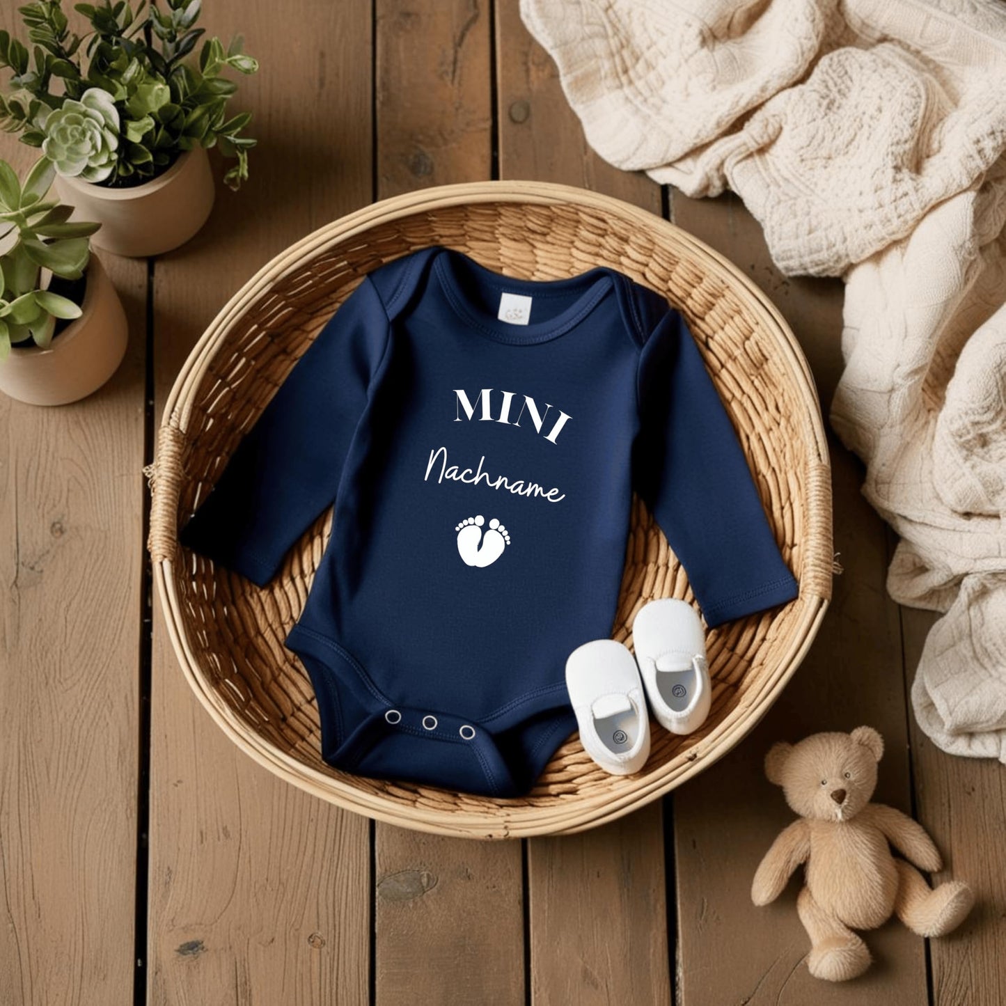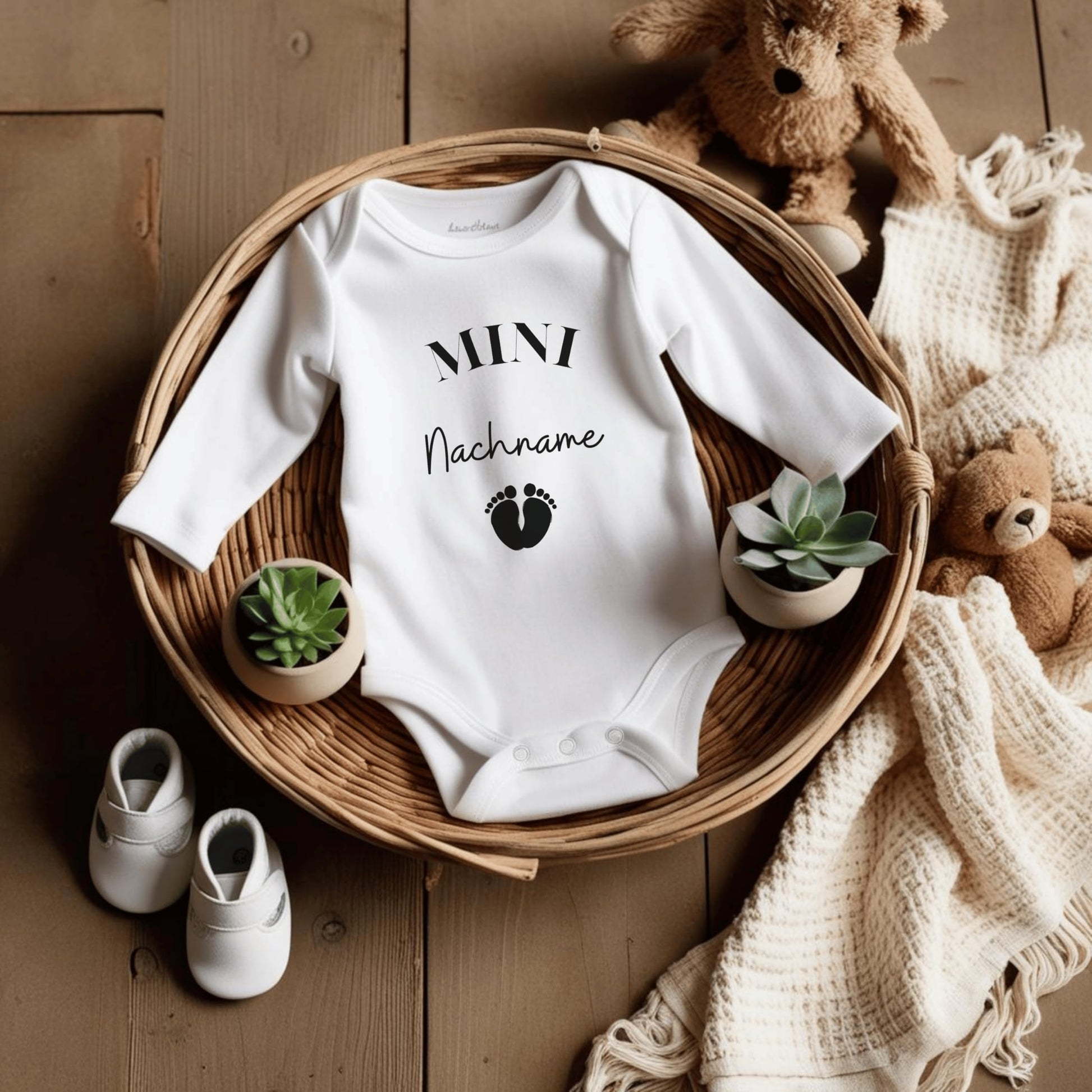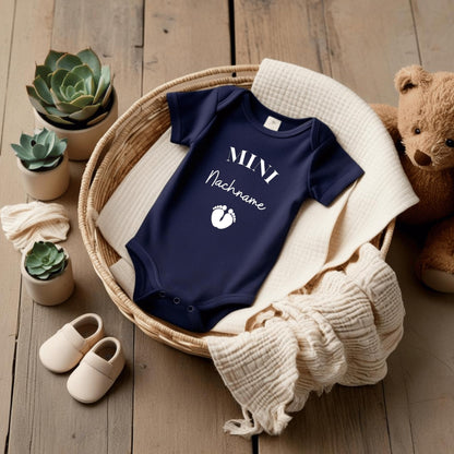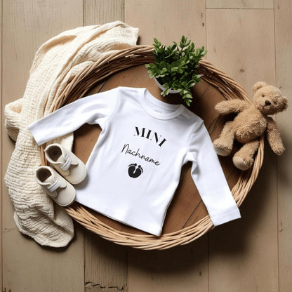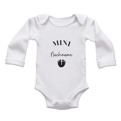 MINI Nachname - Baby Body zur 'Schwangerschaftsverkündung' | Personalisiertes Body: Langarm, Weiß (0-3M)