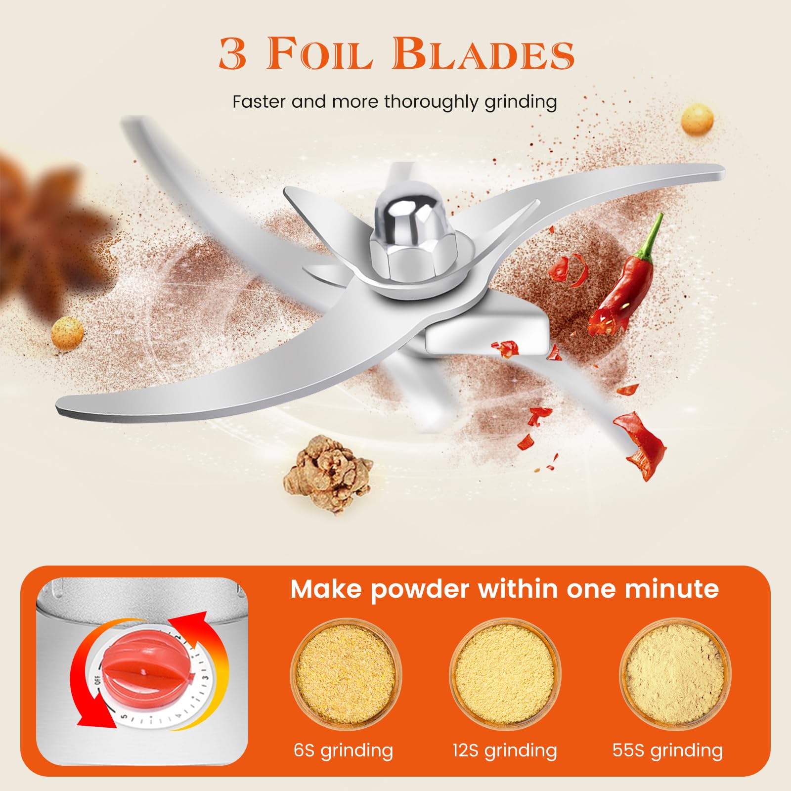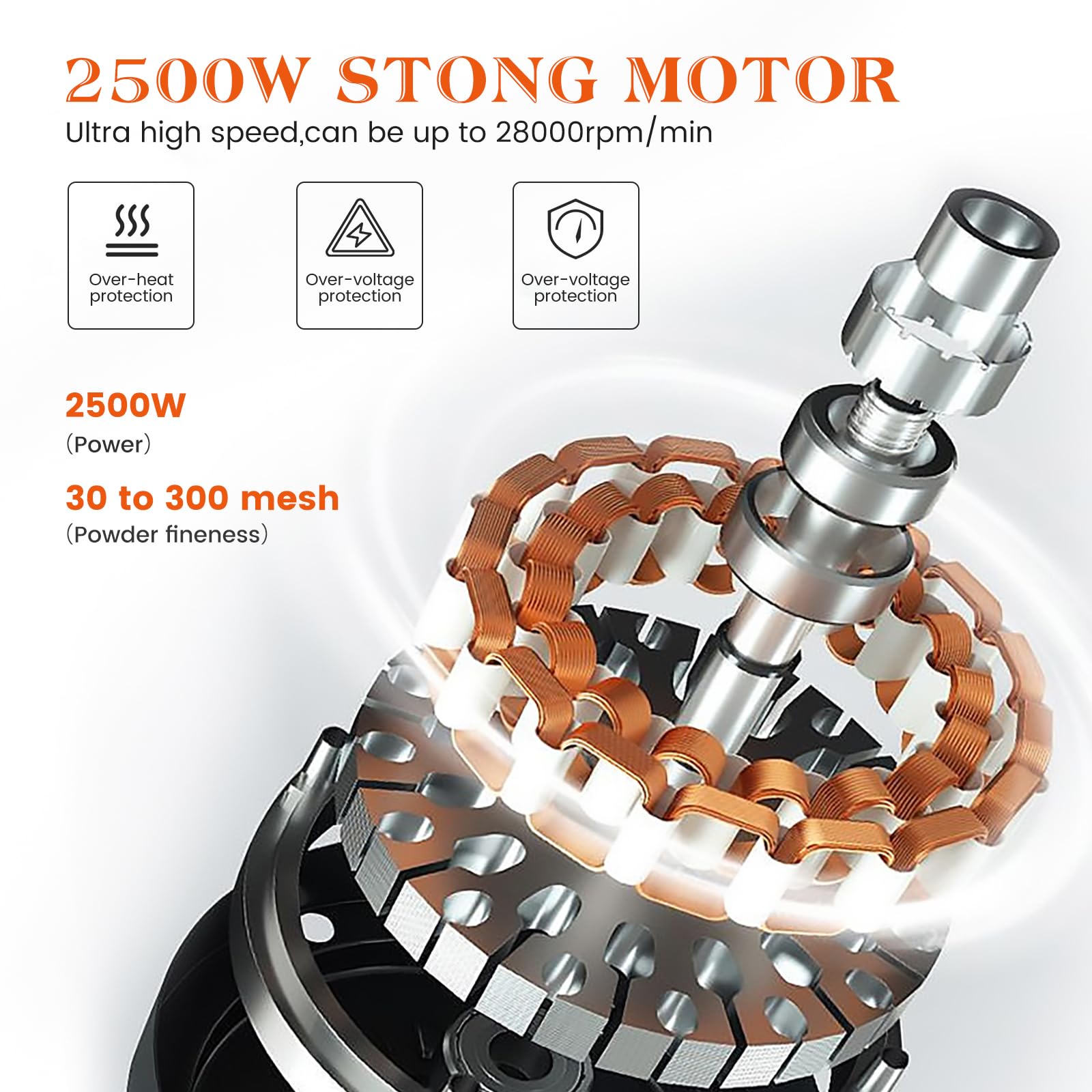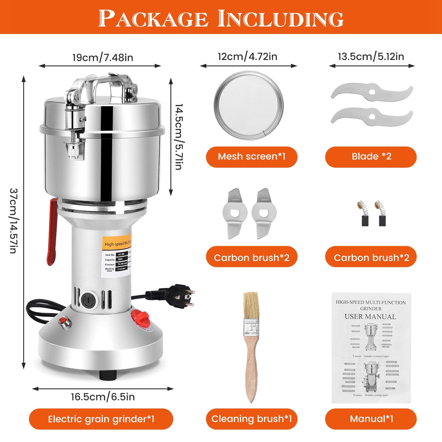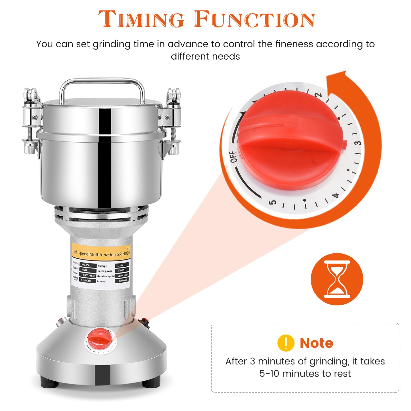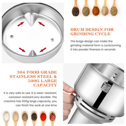Elektrische Getreidemühle (500g) aus Edelstahl: High Speed mit 28000rpm Starker Motor
