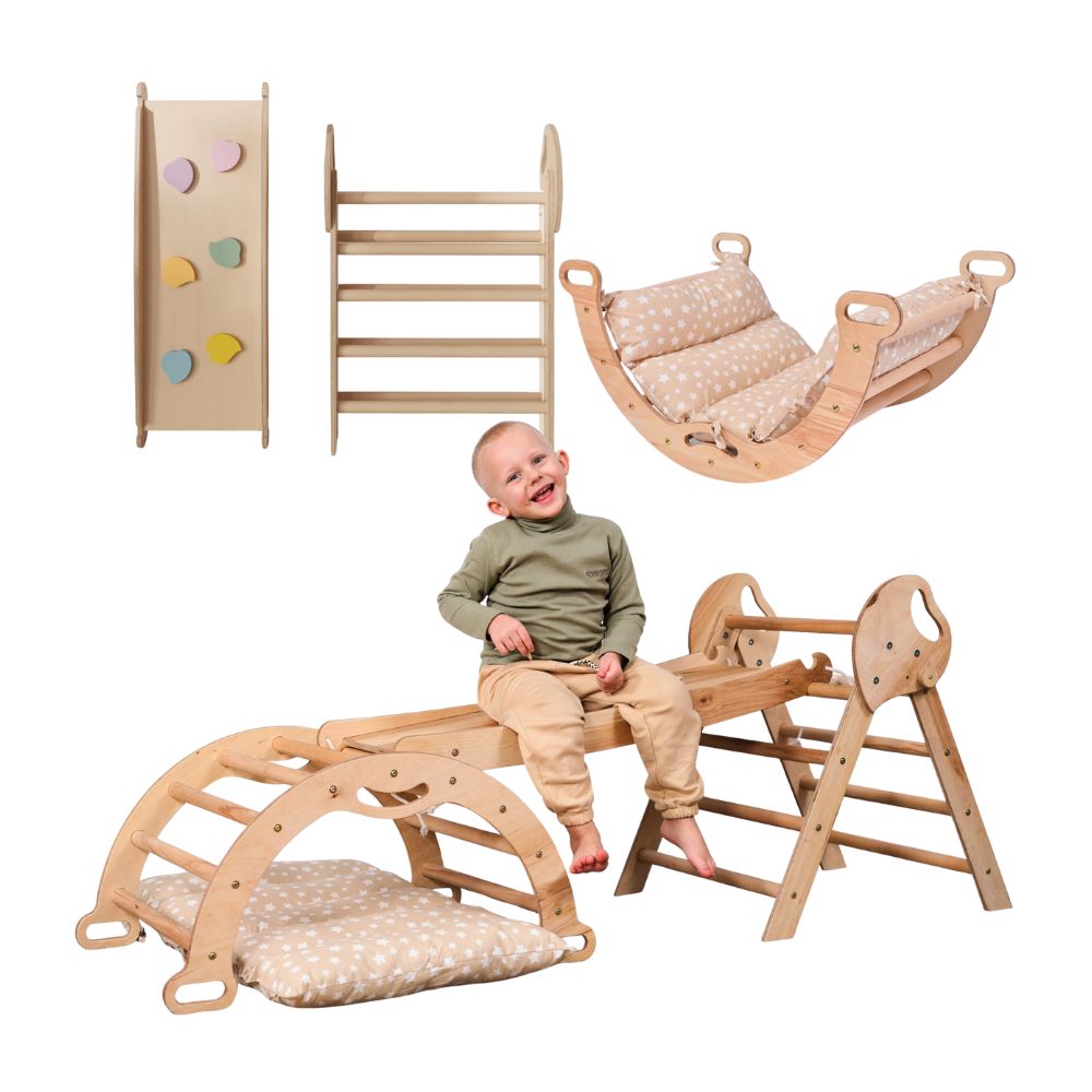 5-in-1 Montessori Klettergerüst-Set mit Kissen & Rutsche für Kinder, Indoor Spielplatz
