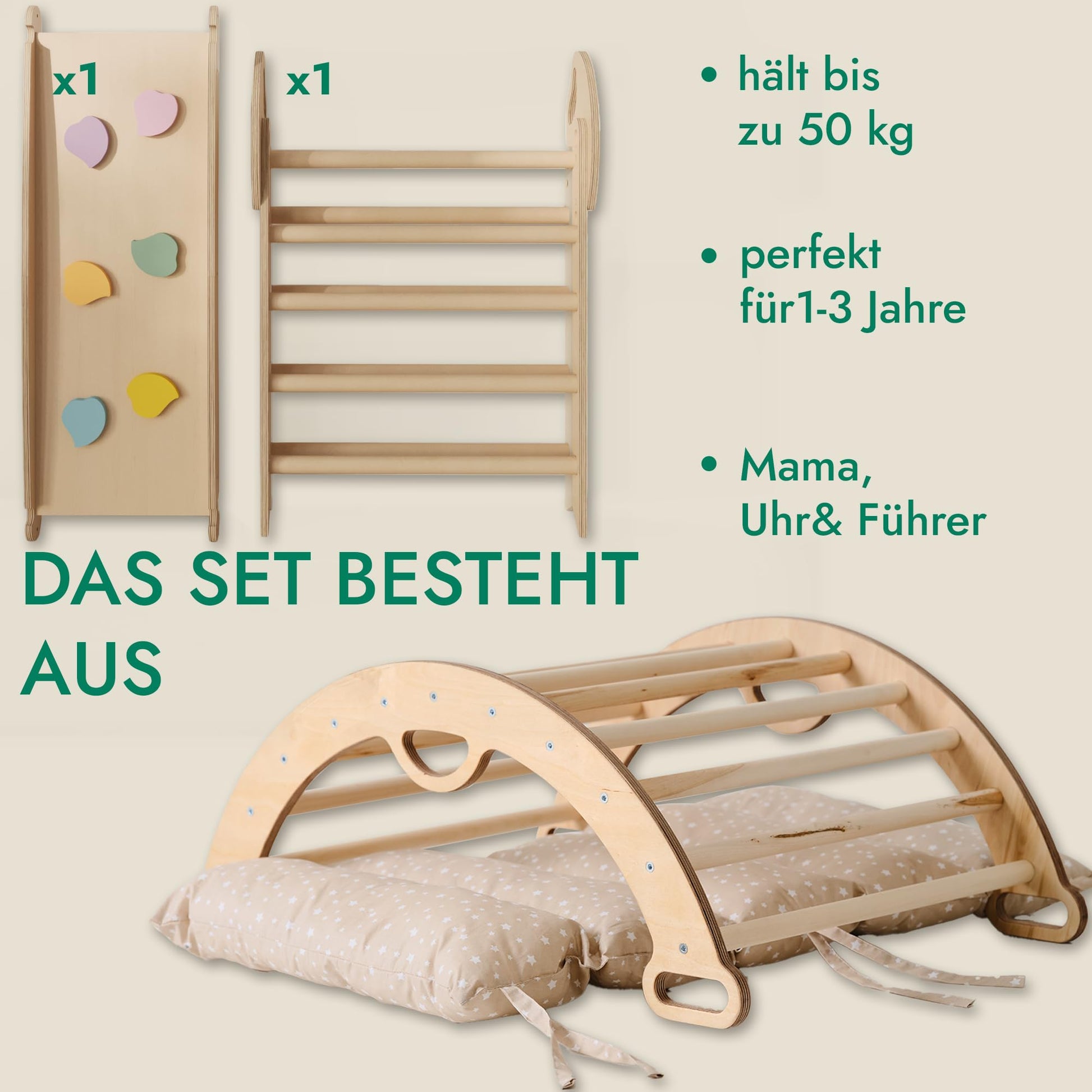 Das vielseitige Set wurde speziell für Kinder von 1-3 Jahren entwickelt und vereint Bewegung, Spiel und Lernen im eigenen Zuhause.