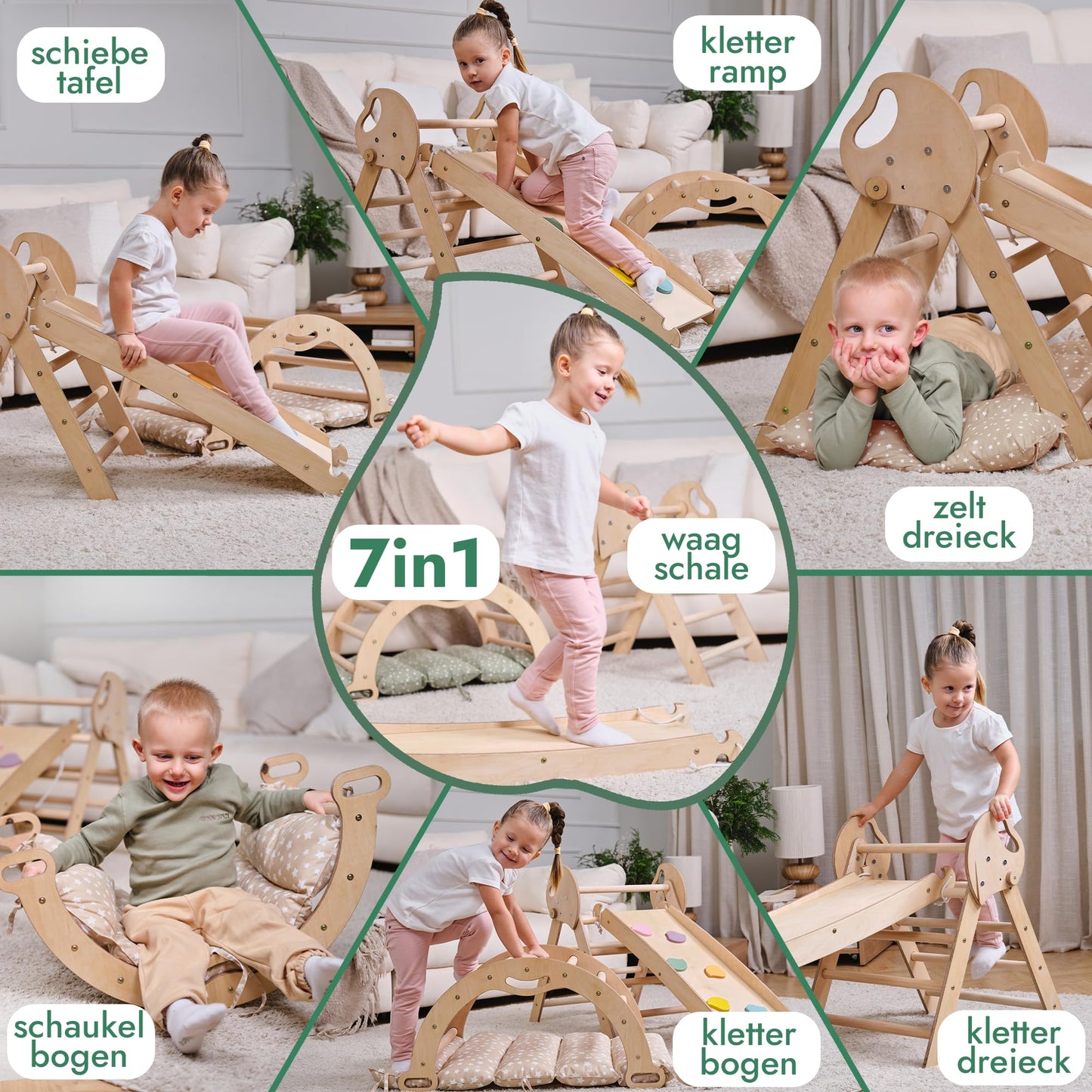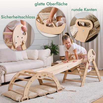 5-in-1 Indoor-Spielset: Kletterdreieck, Kletterbogen mit Kissen & Rutsche