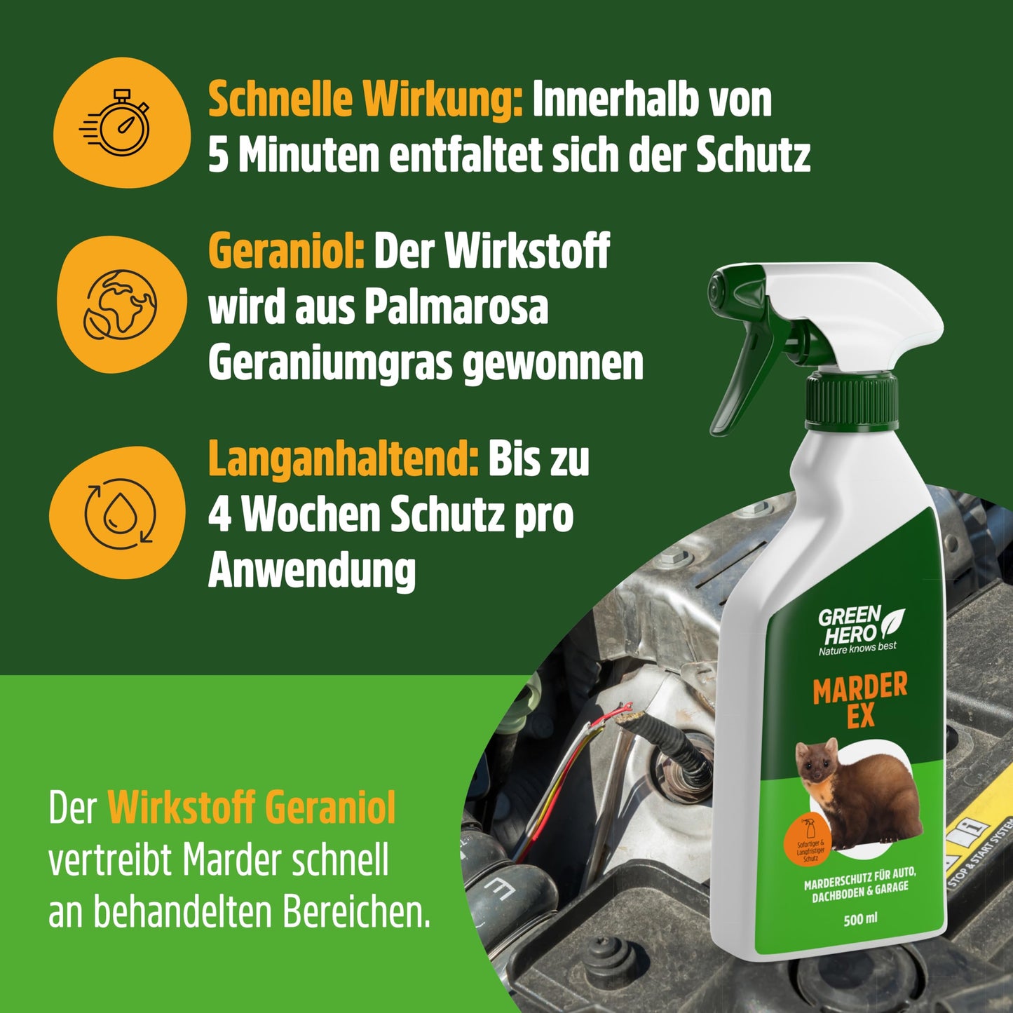 GREEN HERO Marder-EX (500ml): Marderabwehr, Marderschreck Auto-Spray