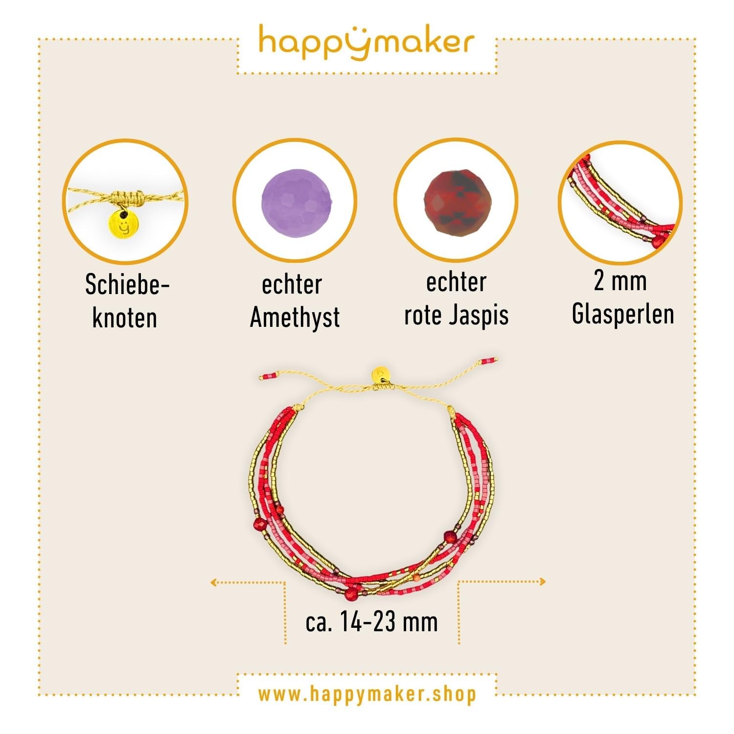 happymaker Damen Perlenarmband mit echten Edelsteinen, Amethyst und roter Jaspis