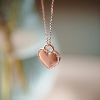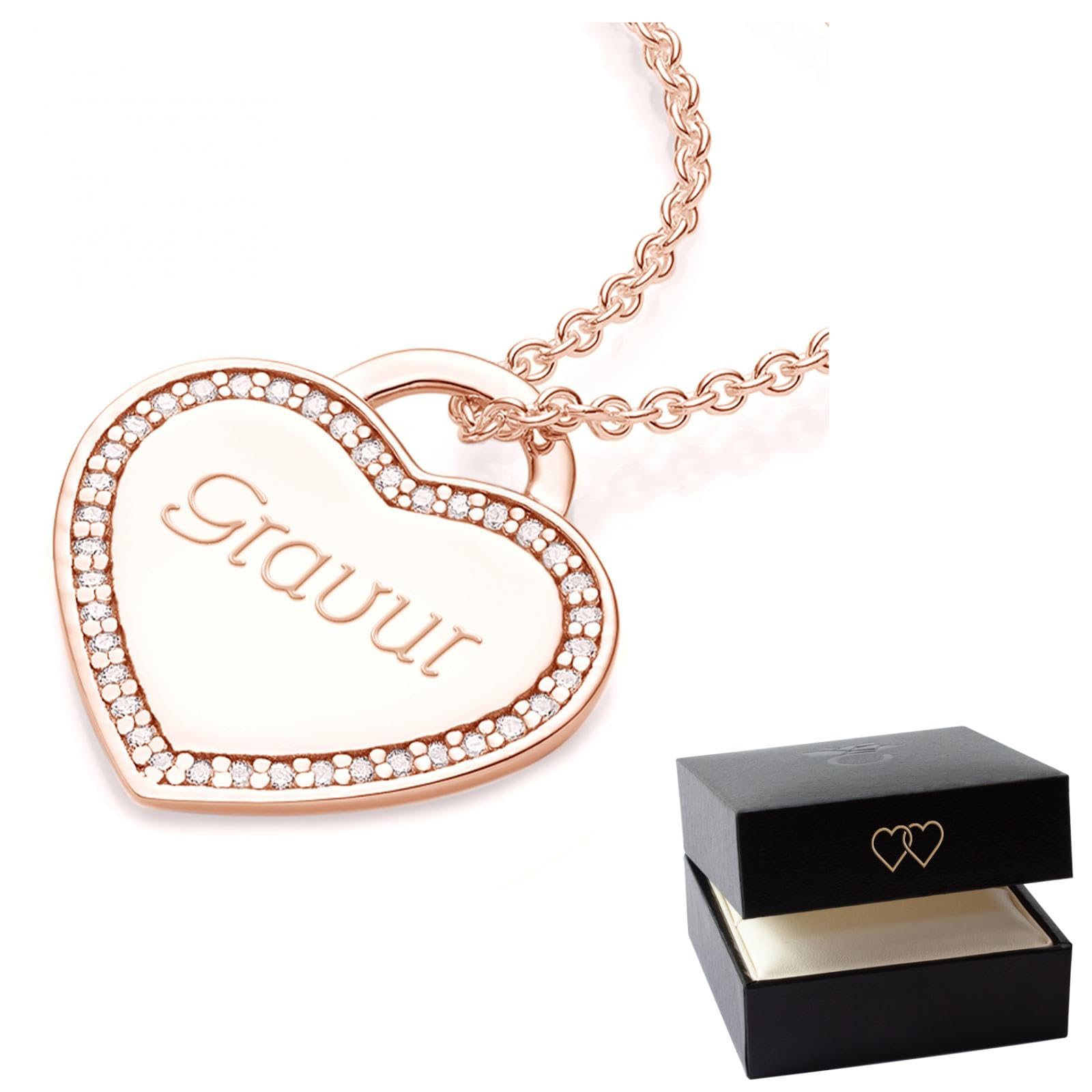 AMOONIC Amour Herzkette mit Gravur (Rosegold-Silber 925 hochwertig vergoldet) inkl. Luxusetui + Kettenanhänger