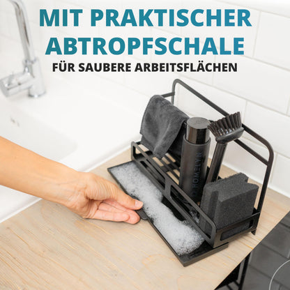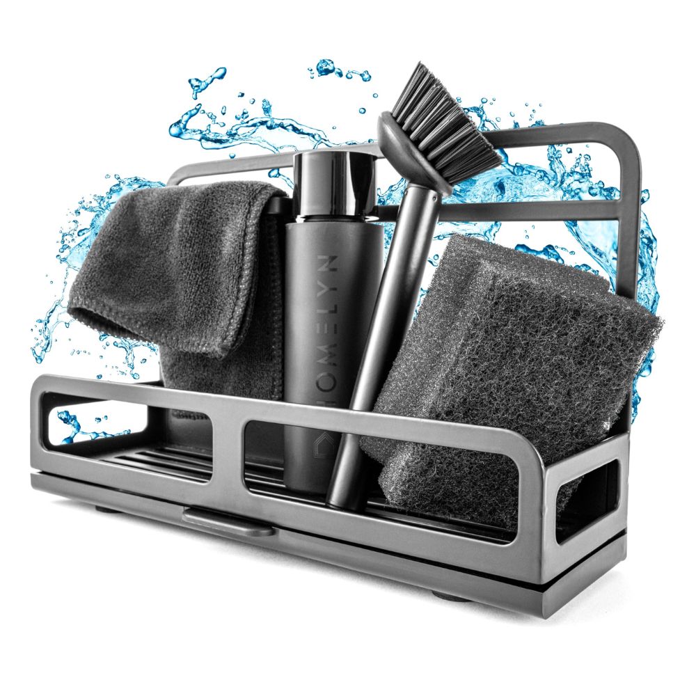 HOMELYN Spülbecken Organizer Set aus Edelstahl inkl. Spülbürste mit Abtropfschale: Modernes Design
