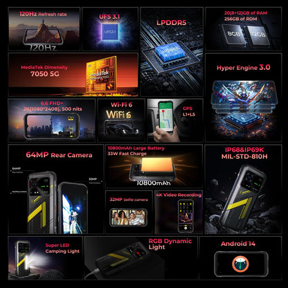 HOTWAV Hyper 7 5G Smartphone (20GB RAM+256GB Speicher): 280LM Campinglicht, 10800mAh