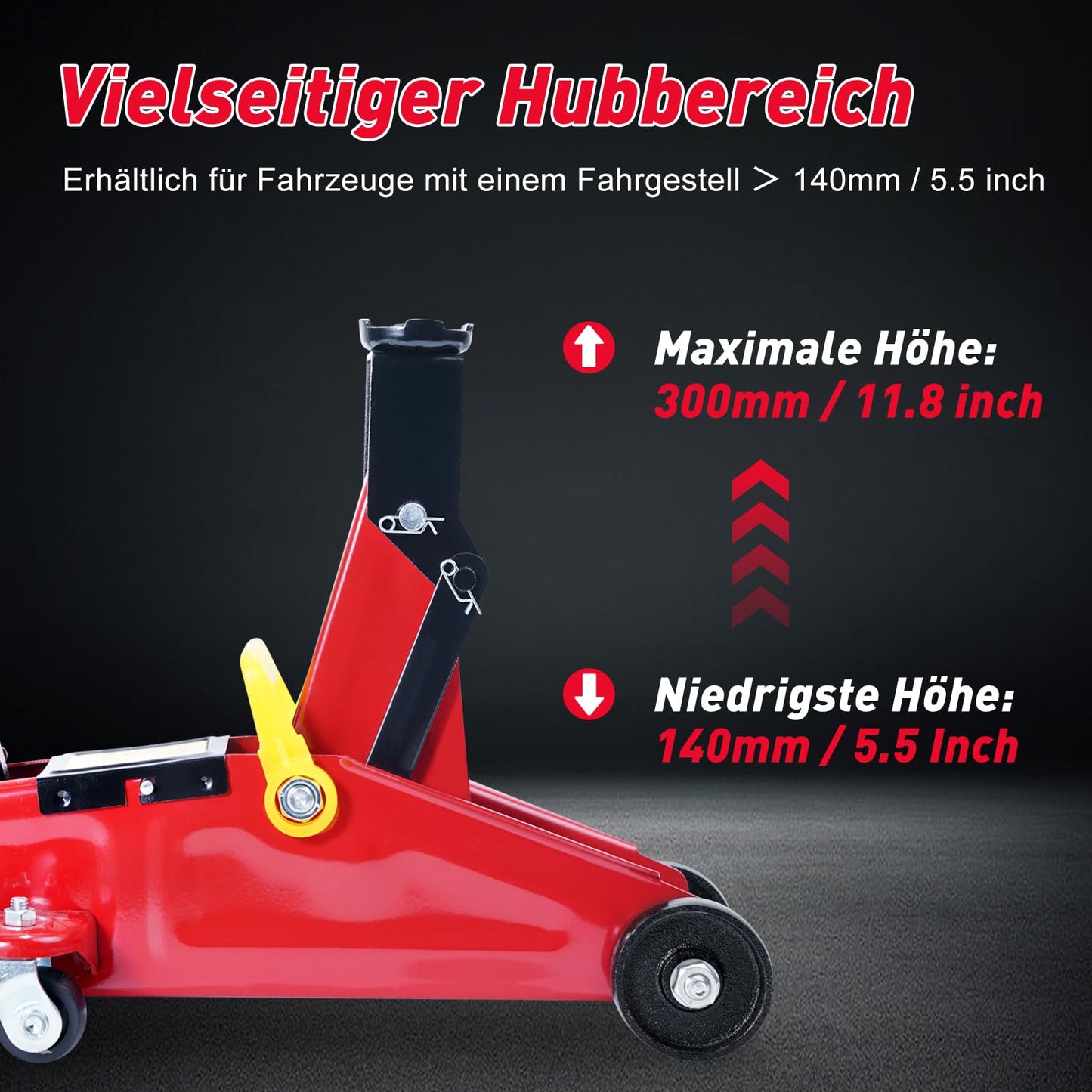 Großer Hebebereich: Verstellbarer Bereich von 5,3 bis 11,6 Zoll - ideal für Reifenwechsel und Wartungsarbeiten.
