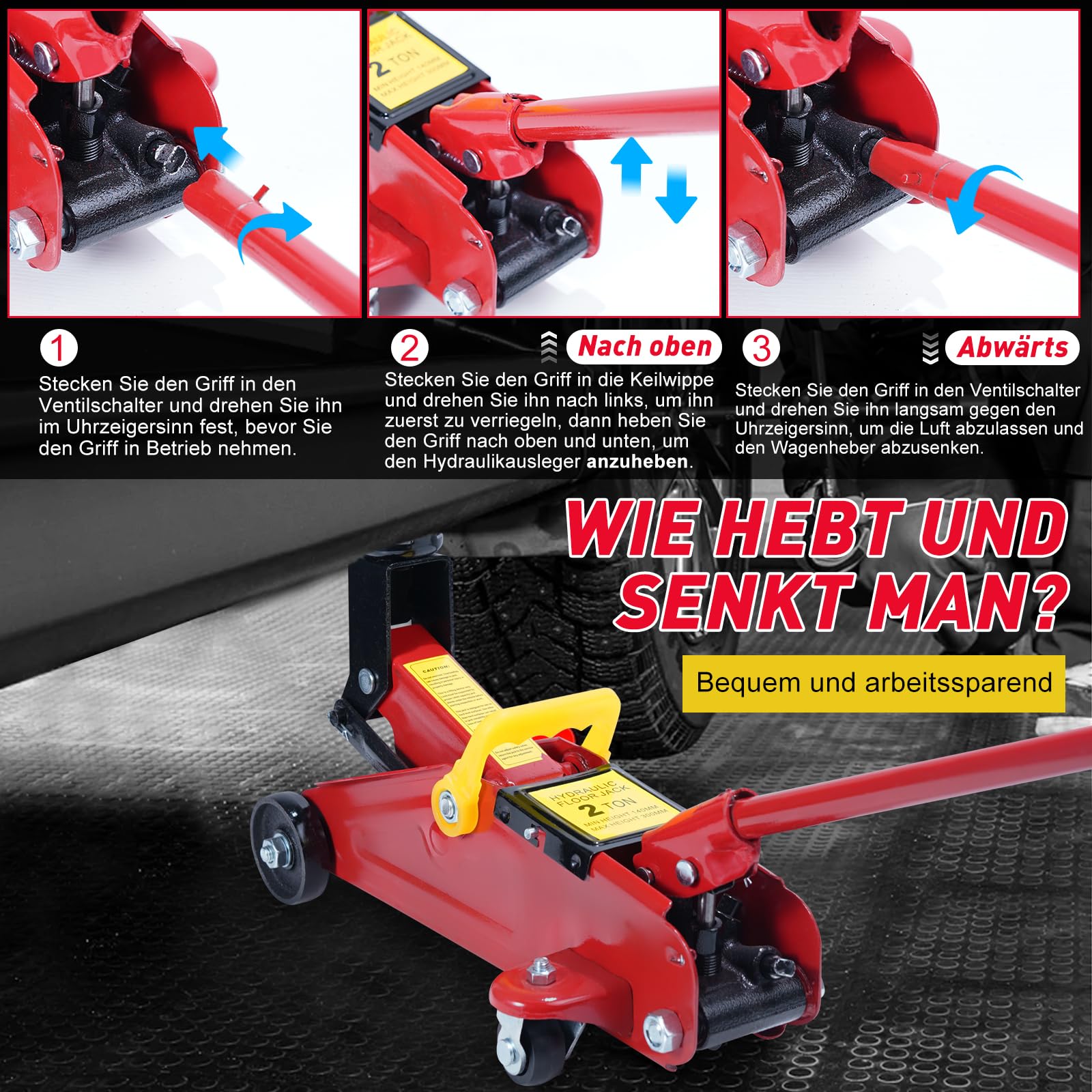Hydraulik-Wagenheber mit hydraulischer Kolben-Schnellhubpumpe | 1.5 Tonnen Kapazität