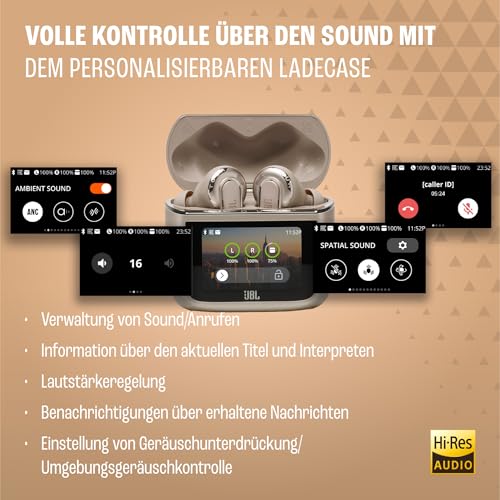 Die JBL Tour Pro 3 bieten dir ein nahtloses, intelligentes und personalisiertes Hörerlebnis - in modernem Latte-Farbton und mit innovativer Touchscreen-Ladehülle.