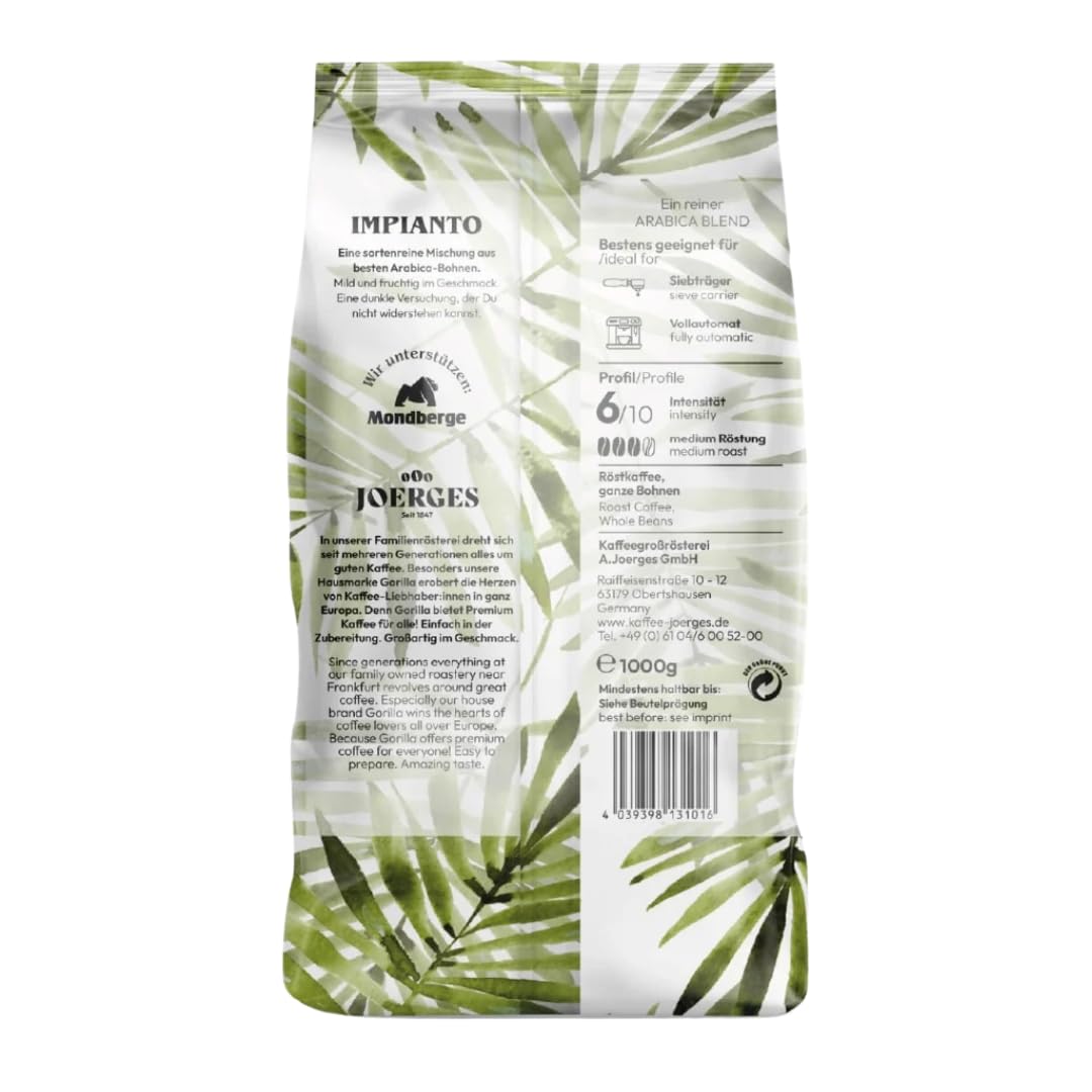 JOERGES GORILLA Espresso Impianto (1kg): Schokoladige Ganze Bohnen mit Fruchtigem Abgang