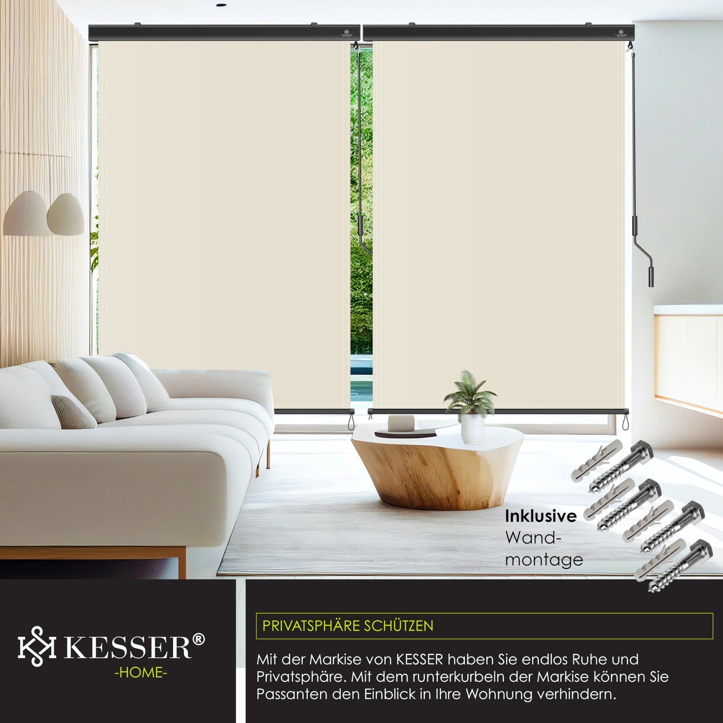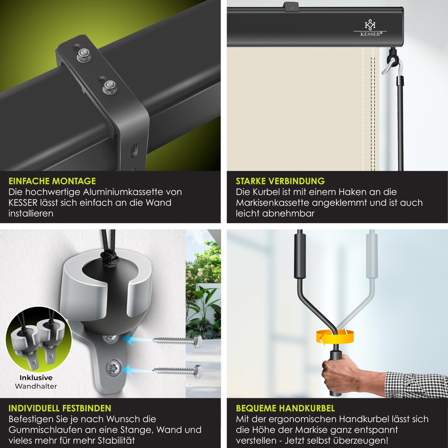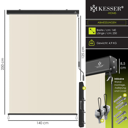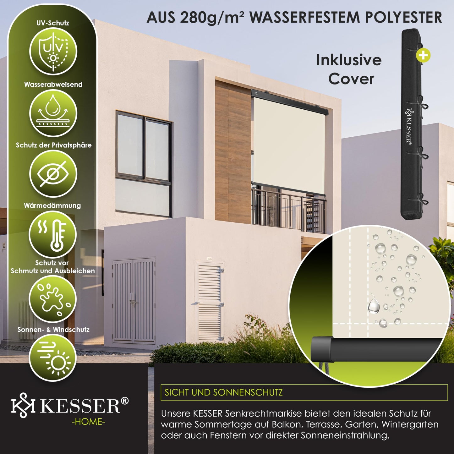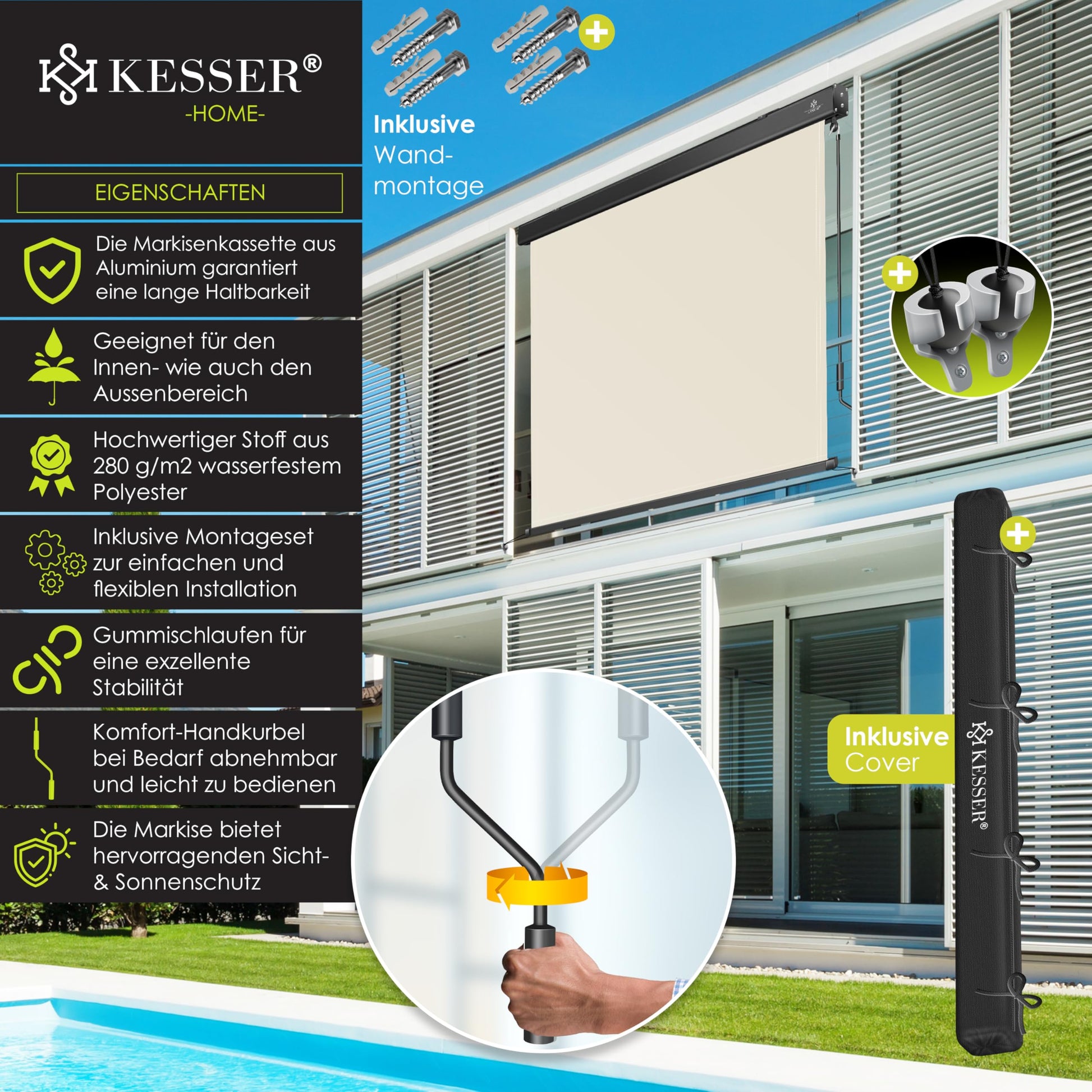KESSER® Senkrechtmarkise mit Handkurbelmechanismus: Sonnen-und Sichtschutz inkl Montageset & Abdeckung