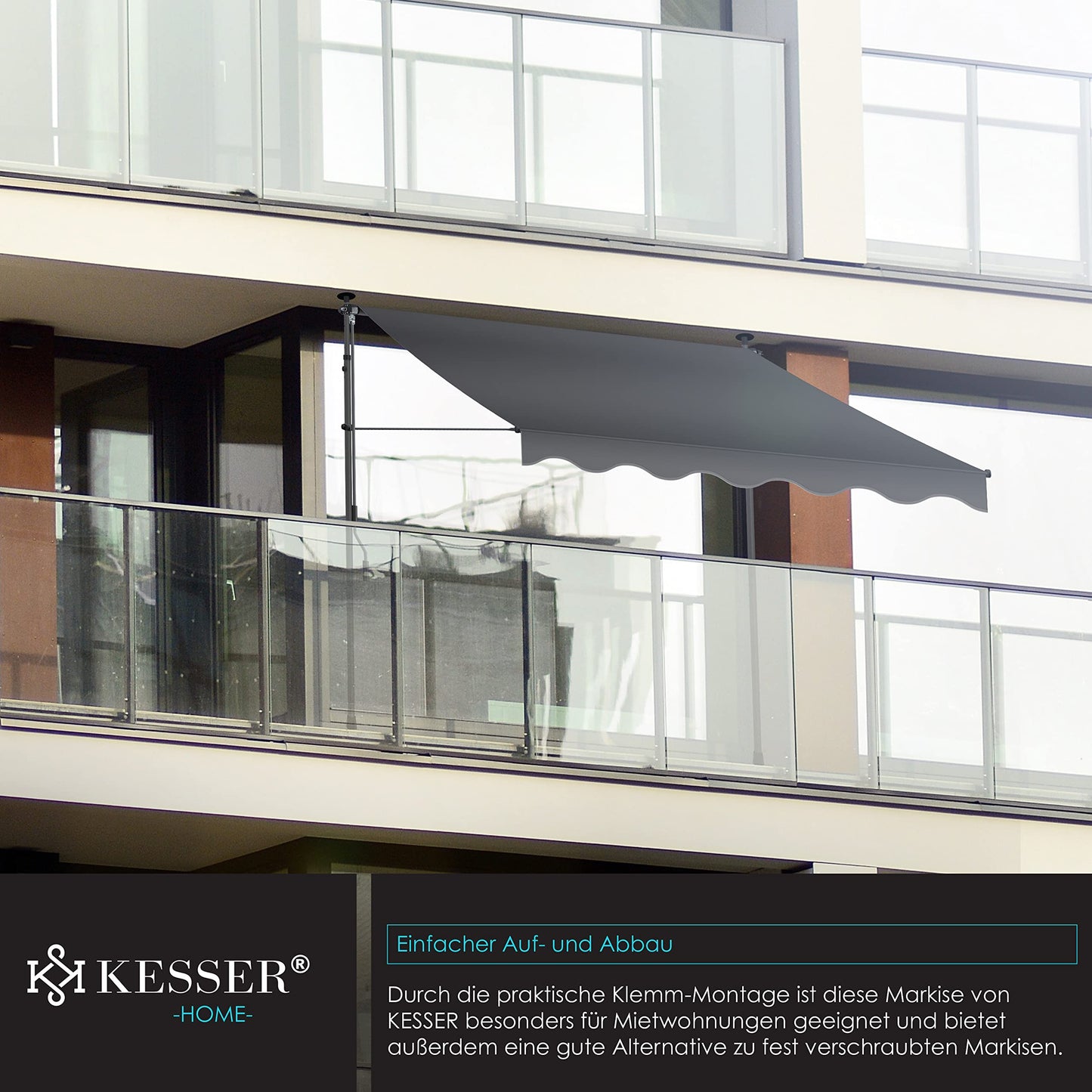 KESSER® Sonnenschutz Klemmmarkise für Balkon & etc. | Höhenverstellbar ohne Bohren (Anthrazit)