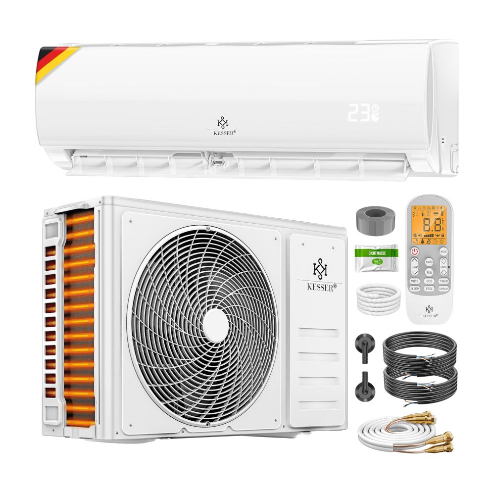 KESSER® 'Quick Connect' Split Klimaanlage-Set mit Heizfunktion: 12000BTU, 3,4kW, WiFi & App