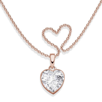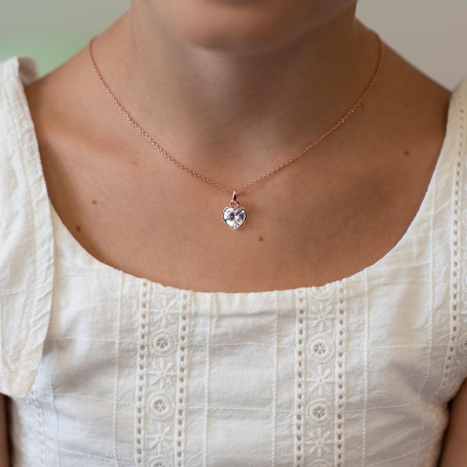 AMOONIC Herzkette für Mädchen (925 Silber) Roségold-vergoldet: Kinderkette mit '45cm' Herzanhänger