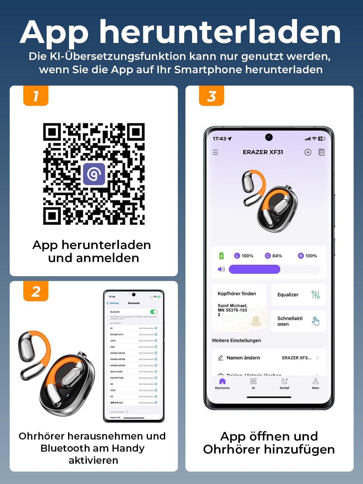 KI 3-in-1 Übersetzungskopfhörer mit 150 Sprachen, 5 Übersetzungsmodi: Echtzeit-Übersetzer mit APP