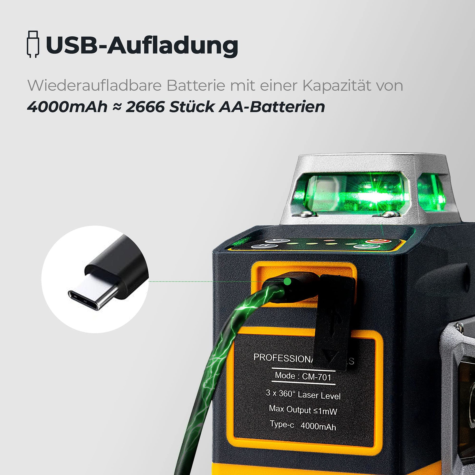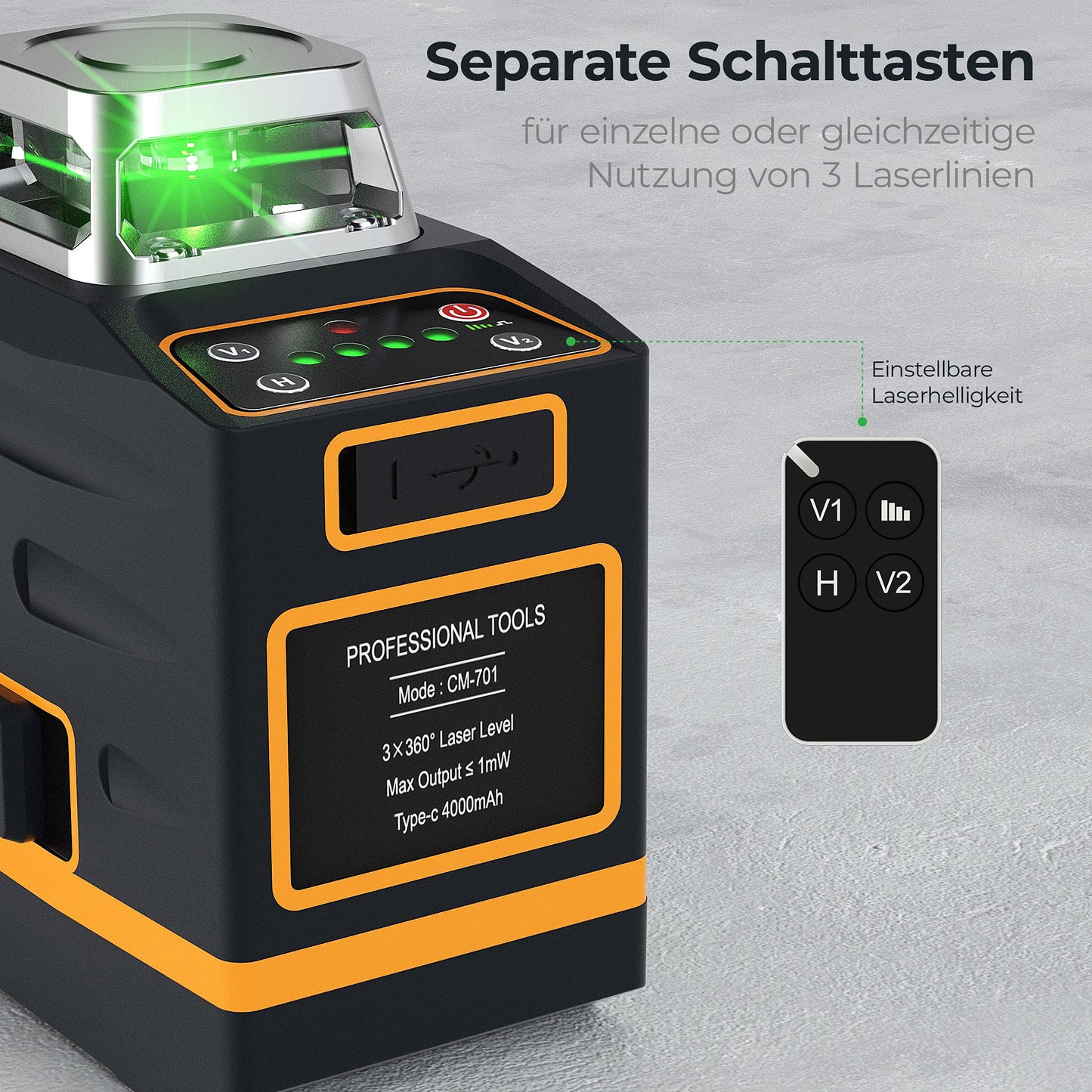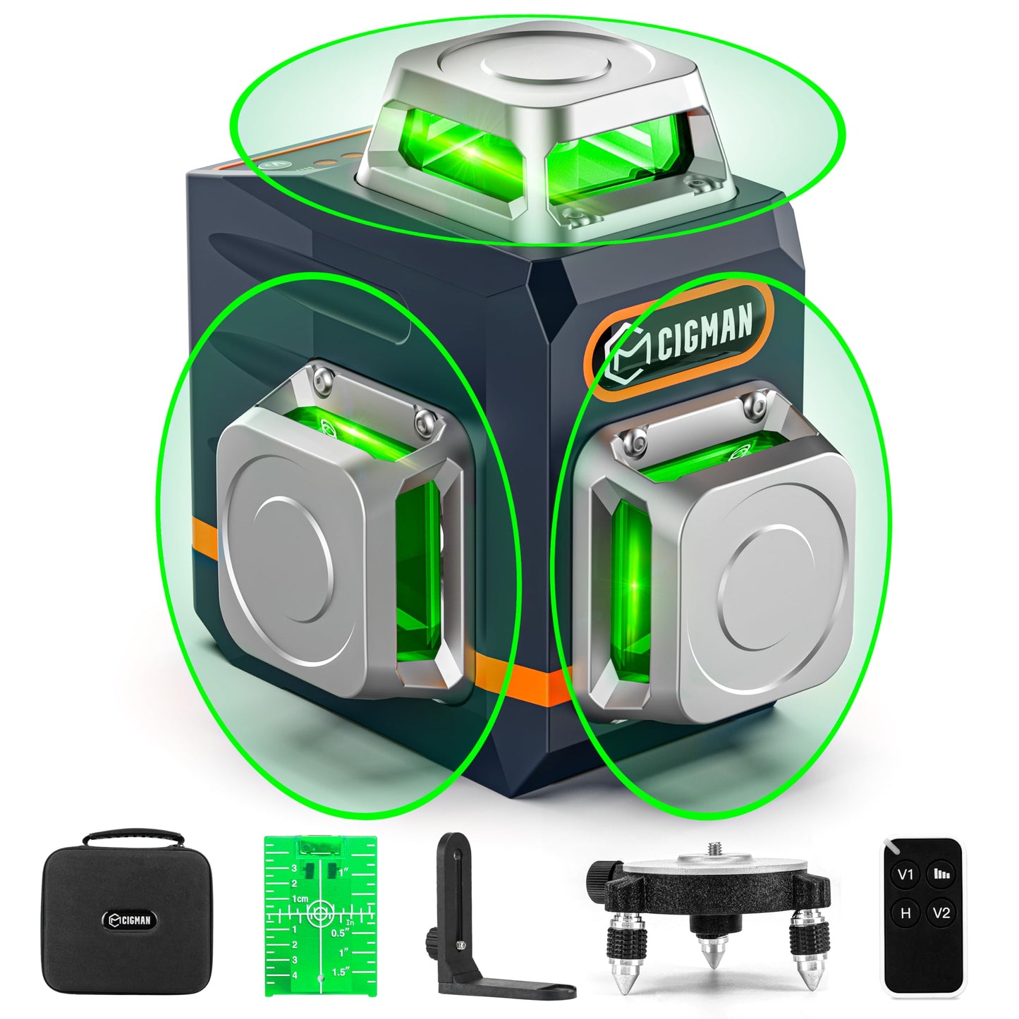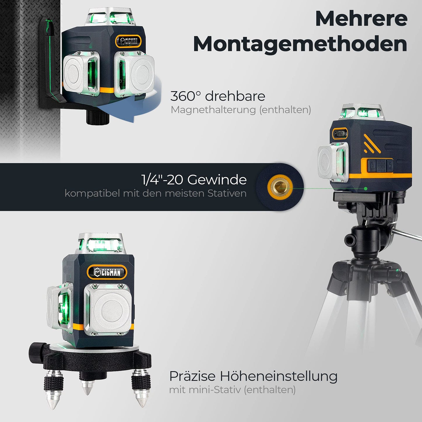 Kreuzlinienlaser, CIGMAN (3x360 Grad) Grün: Selbstnivellierend Laser Wasserwaage, Baulaser