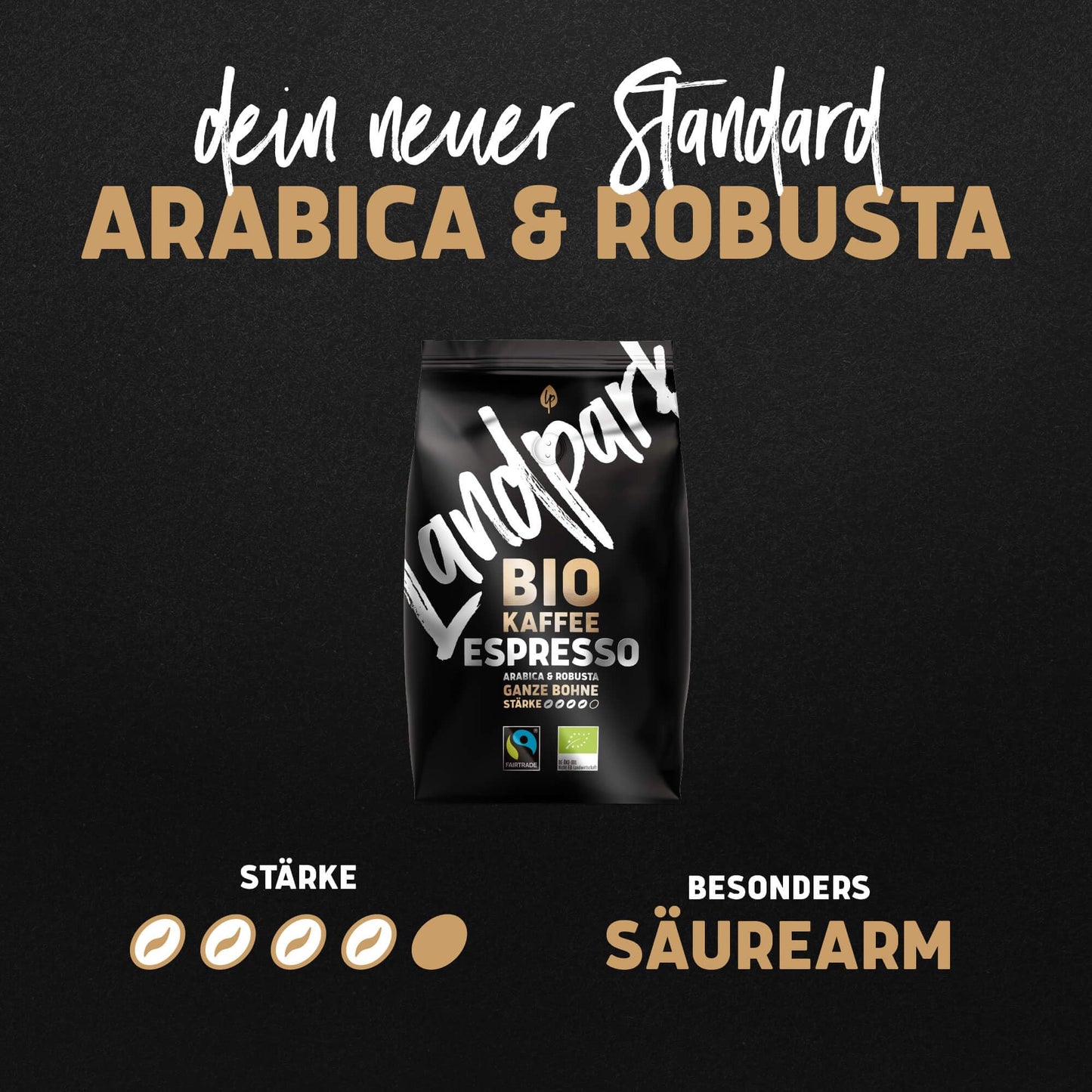 Landpark Bio Kaffee Espresso 500g: Arabica & Robusta Kaffeebohnen | Fair Trade