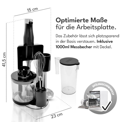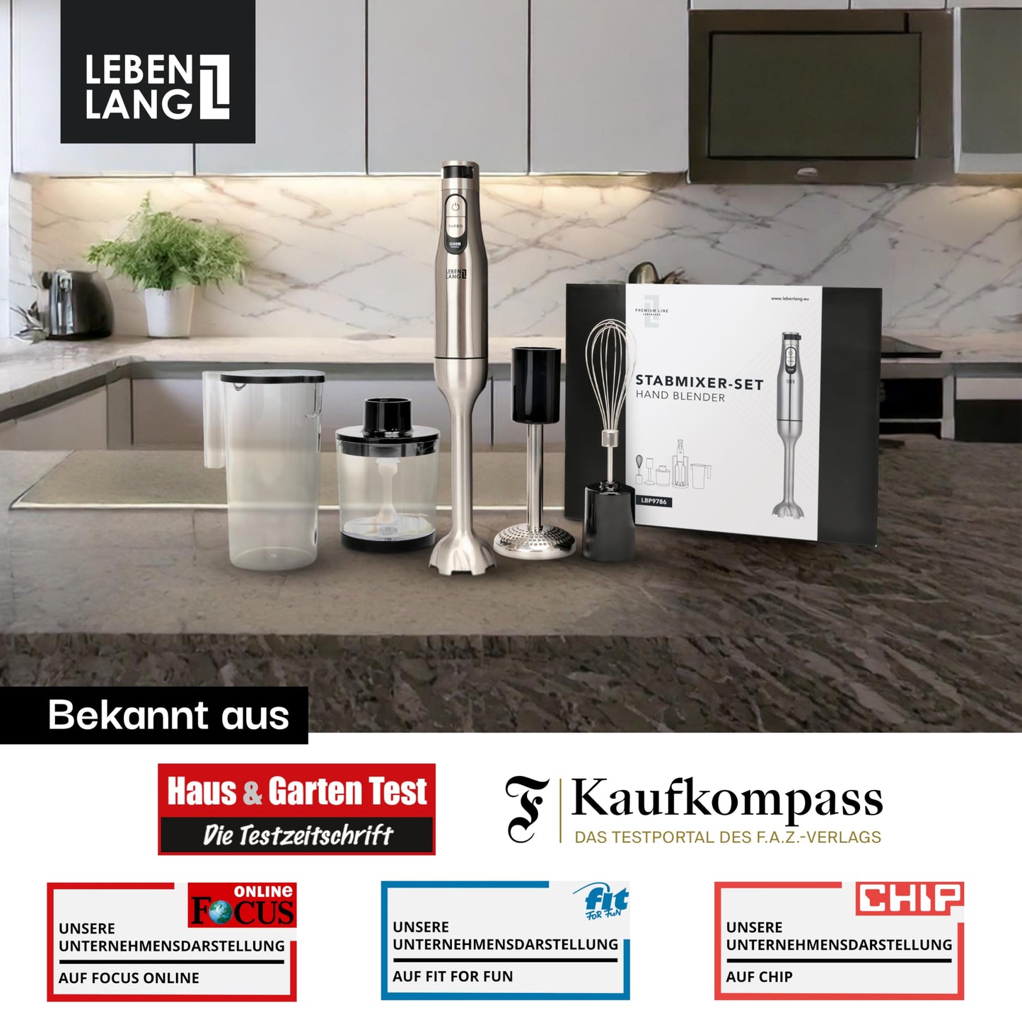 LEBENLANG Premium Stabmixer Set (1200W) inkl. 5x Zubehör & Spritzschutz