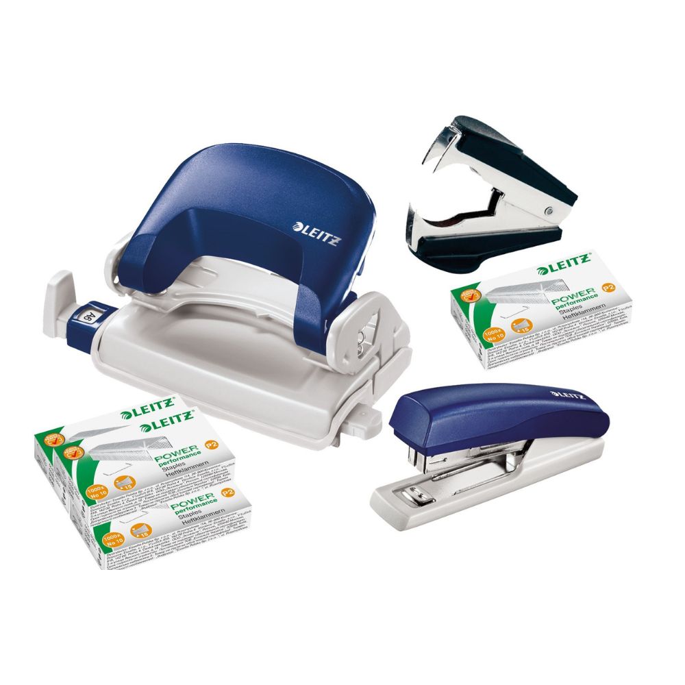 Leitz (5507) Stanz- und Lochgerät Bundle inkl. Aufbewahrungsklammern und Klammerentferner