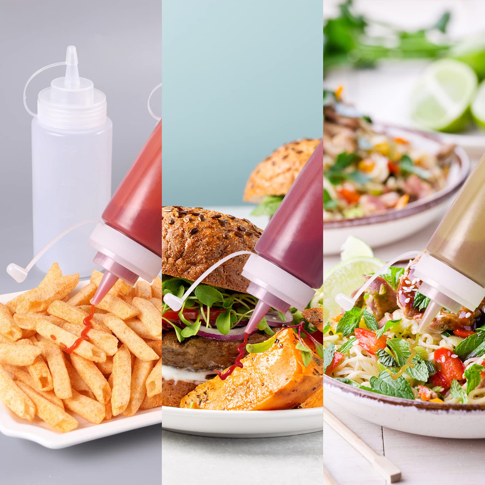 Die praktischen Lestiven Squeeze Flaschen aus lebensmittelechtem PE-Material bieten eine sichere, präzise und vielseitige Möglichkeit, Flüssigkeiten und Gewürze aufzubewahren und dosiert zu verwenden.