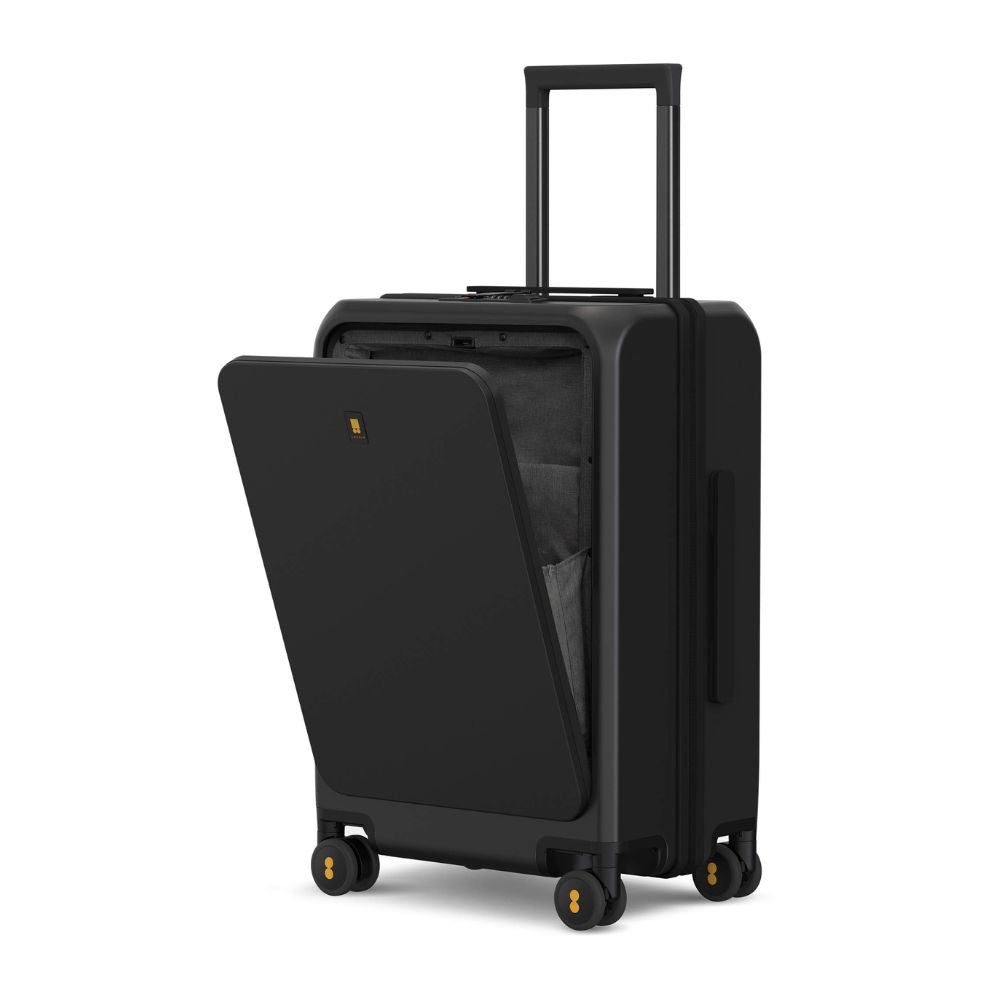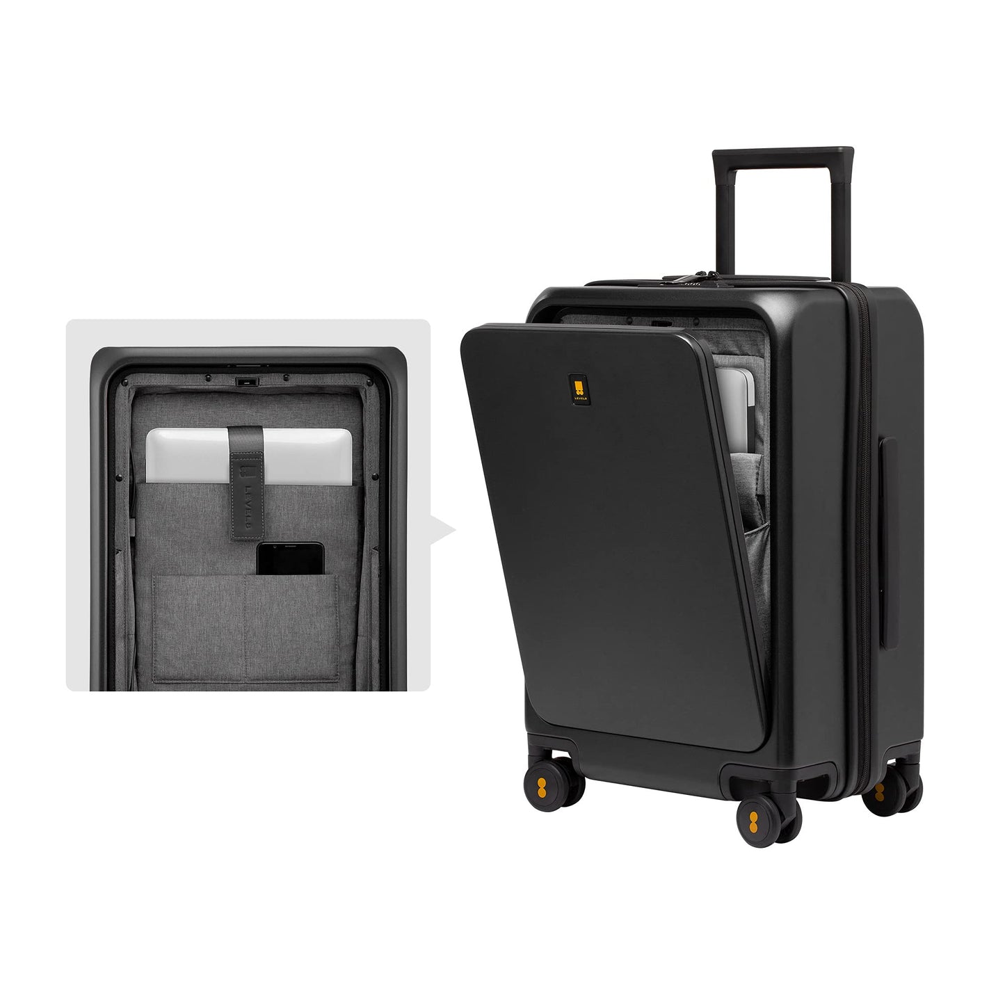 LEVEL8 Hartschalen-Reisekoffer mit USB & Front Laptopfach: TSA-Schloss (Schwarz)