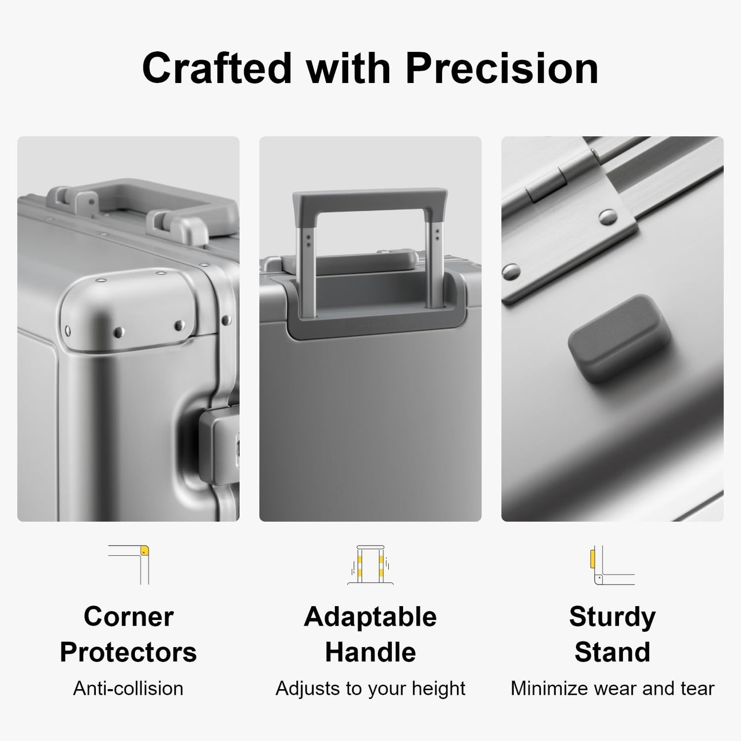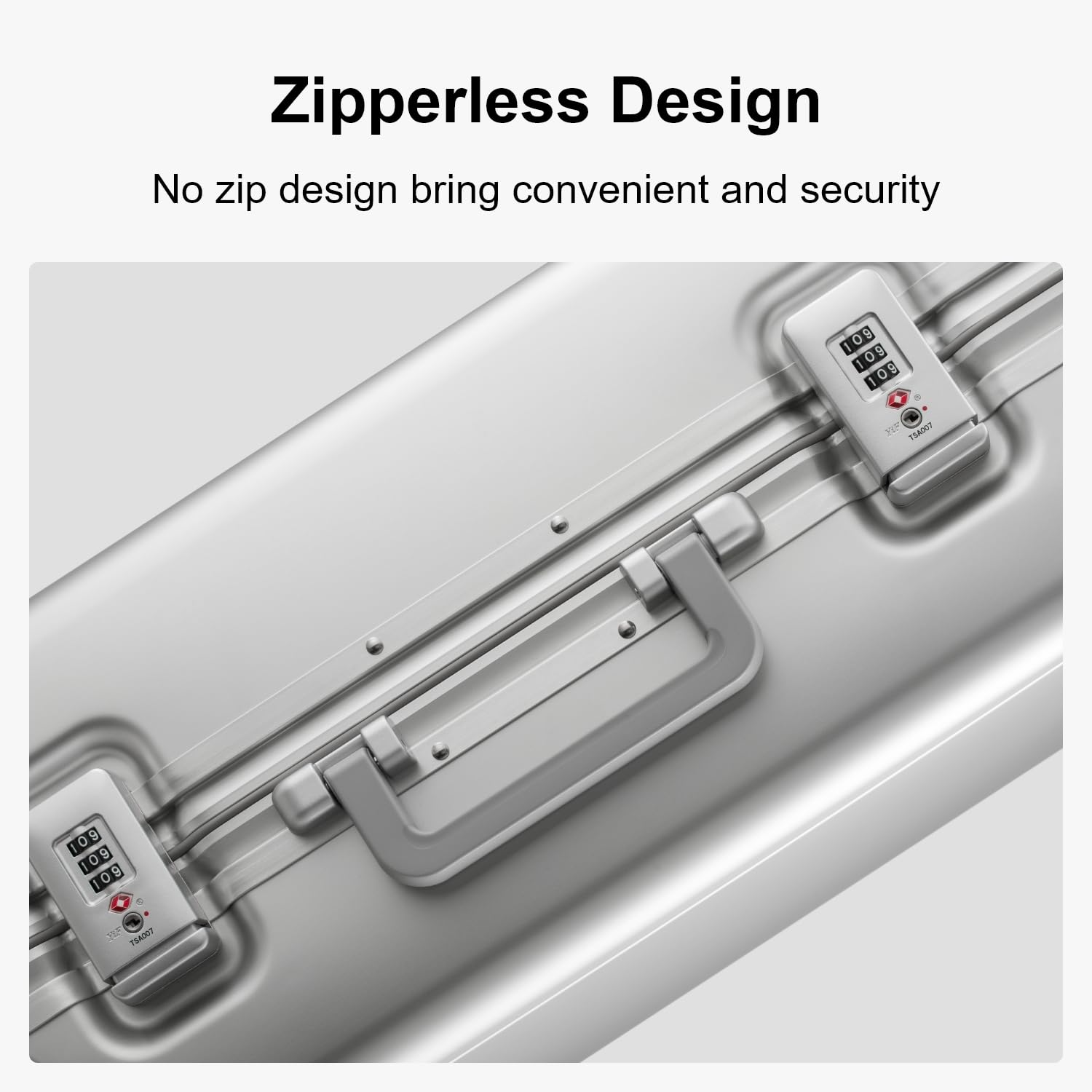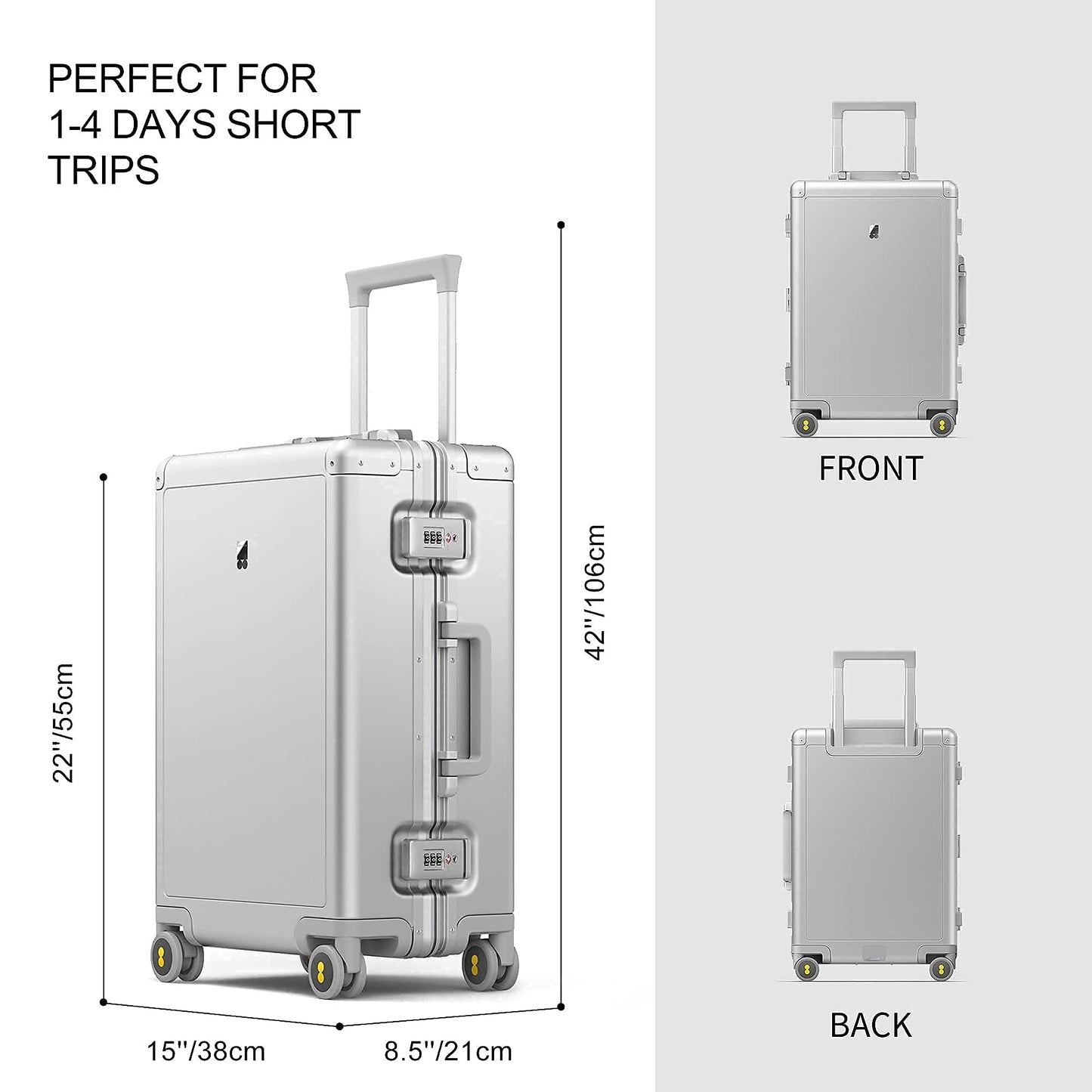LEVEL8 Hartschalen Aluminum-Reisekoffer mit Doppelte TSA-Schloss (55cm - 35 Liter): Silber