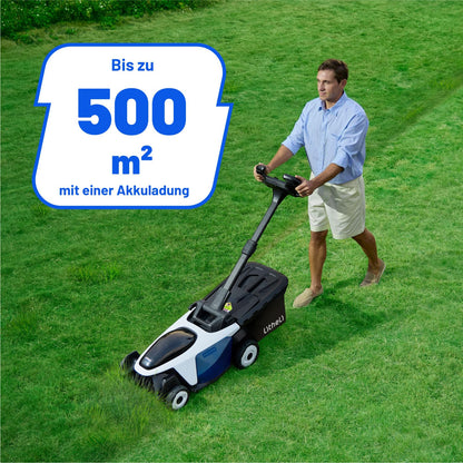 43cm Schnittbreite: Für schnelle Flächenabdeckung auf bis zu 500m²