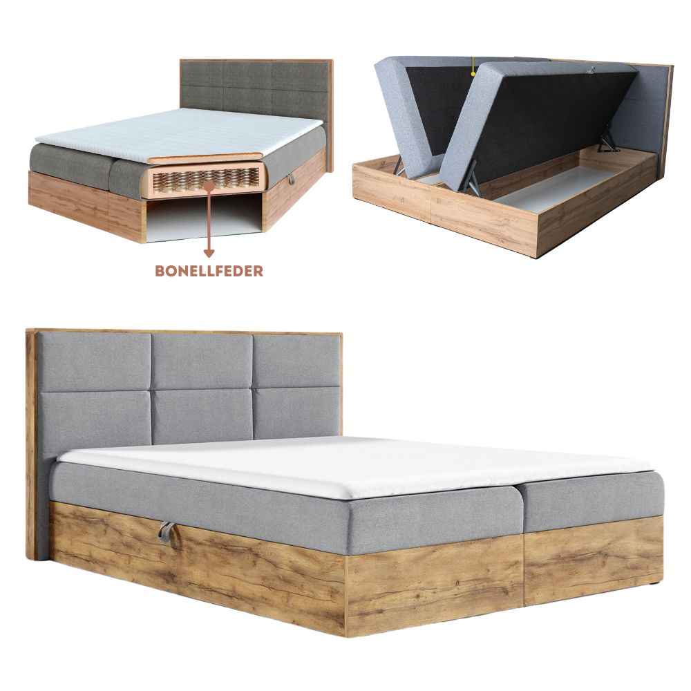 Boxspring-Doppelbett 80x200cm mit Bonellmatratze | Bettkasten für Bettwäsche und Topper