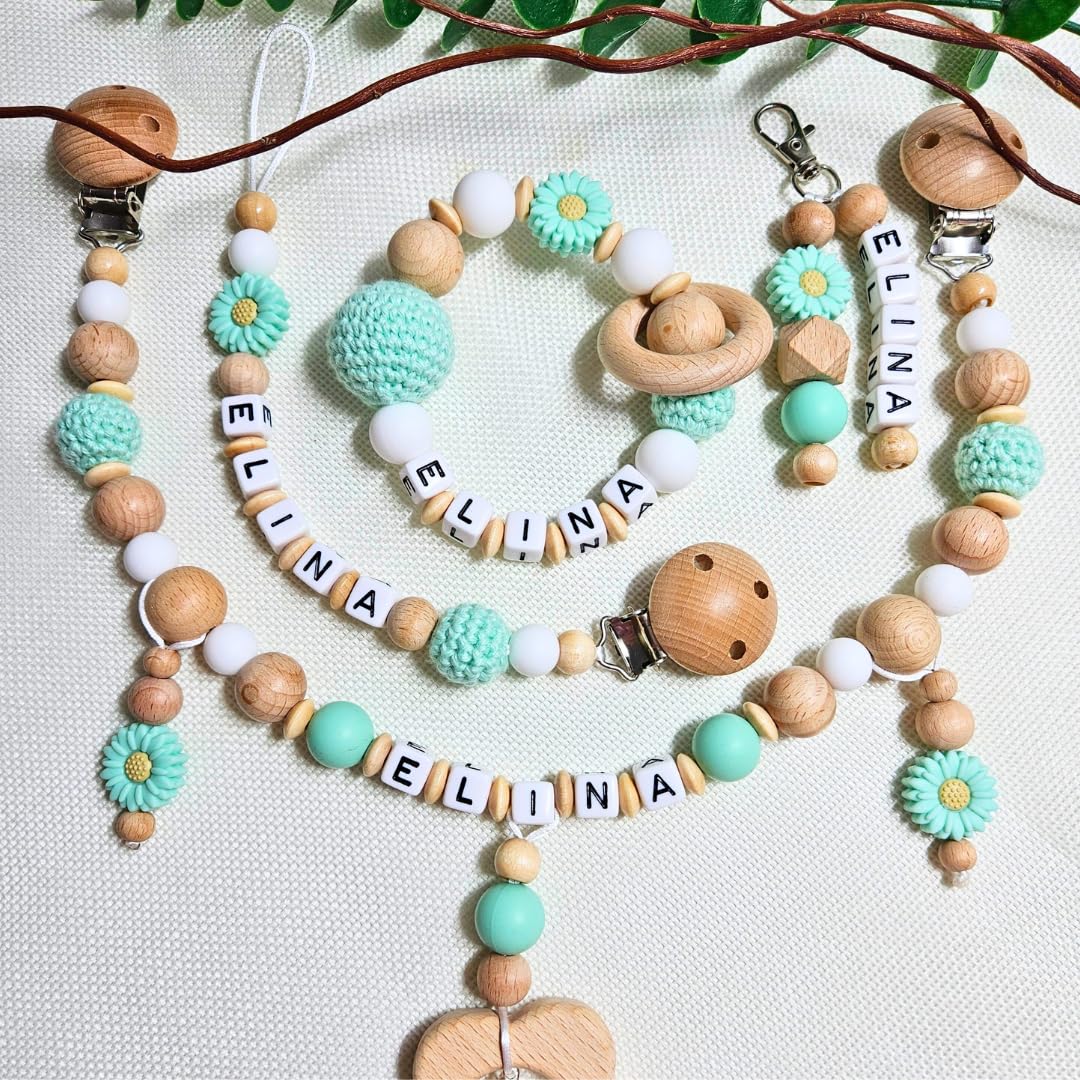 Personalisierbar & handgemacht: Jede Schnullerkette wird in liebevoller Handarbeit individuell gefertigt