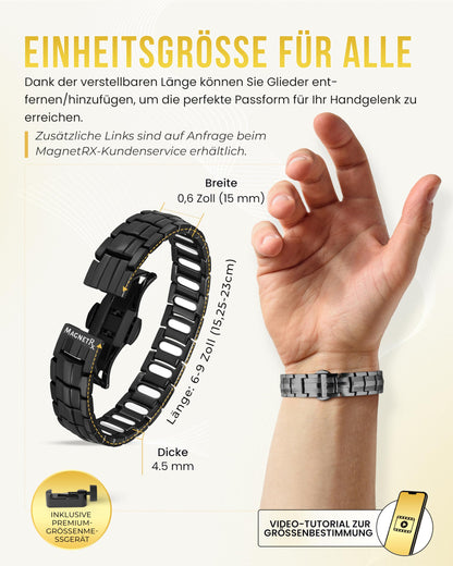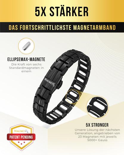 Das MagnetRX EllipseMAX Magnetarmband für Herren kombiniert modernste Magnettechnologie mit stilvollem Design. Gefertigt aus leichtem, langlebigem und anlaufgeschütztem Titan, bietet es eine außergewöhnliche Magnetkraft von 5.000 Gauss durch patentierte ellipsenförmige Magnete - ideal zur Unterstützung von Wohlbefinden und Leistung.