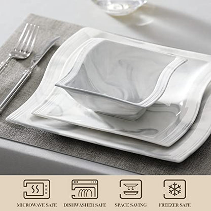 Das stilvolle MALACASA Geschirrset in edlem Marmorgrau überzeugt durch elegantes Design, hohe Qualität und vielseitige Einsatzmöglichkeiten - perfekt für Alltag und besondere Anlässe.