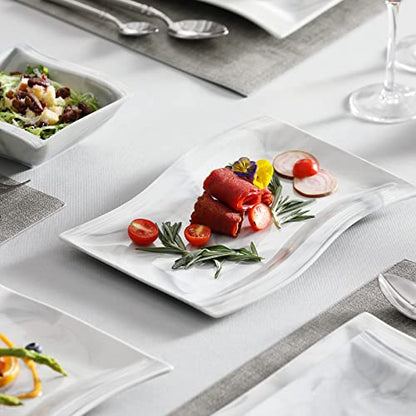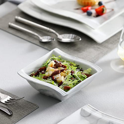 - Umfangreiches Set: Enthält 6 Flachteller (27 × 25,8 × 2 cm), 6 Suppenteller (22 × 21 × 4 cm), 6 Dessertteller (22 × 20,8 × 1,7 cm), 6 Schalen (14 × 14 × 5,3 cm) sowie 2 Servierplatten (28 × 20 × 1,2 cm und 33 × 22,5 × 1,6 cm).