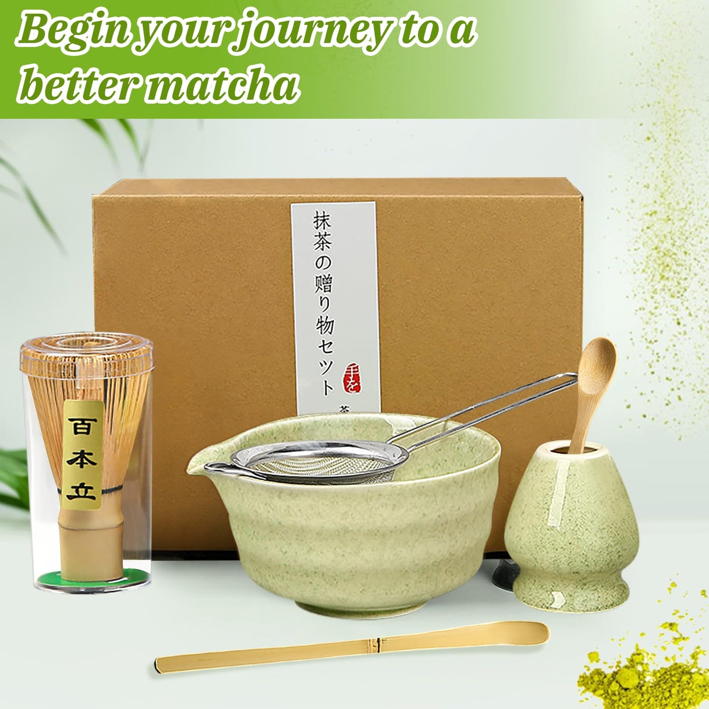 - KOMPLETTES SET: Traditionelles japanisches Matcha-Set bestehend aus Matcha-Schale, Ständer, Sieb und Schaufel für die authentische Teezubereitung