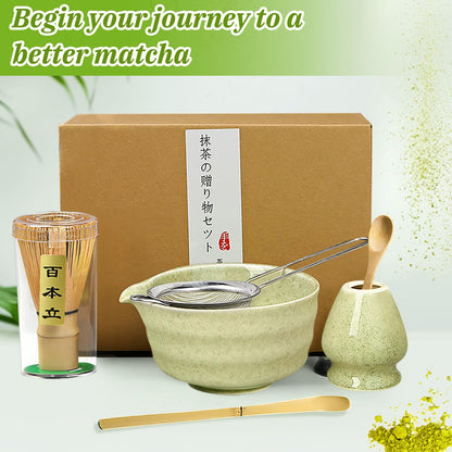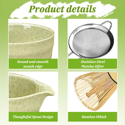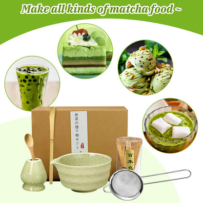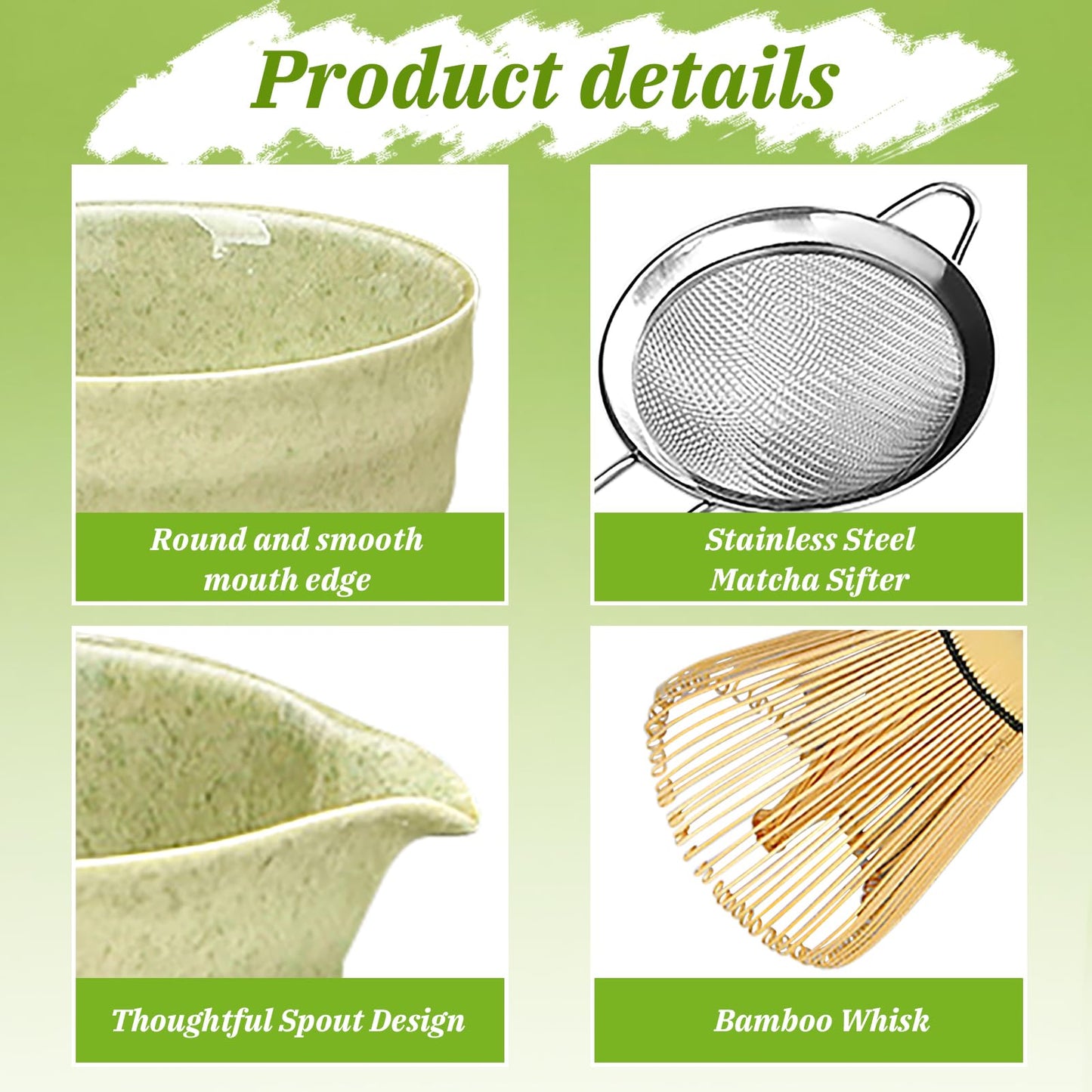 Matcha set, Japanisches Tee-Set, Matcha-Schale, Schaufel, Sieb, Matcha-Besenhalter, Matcha-Besenständer, Matcha-Tee-Set (Hellgrün)